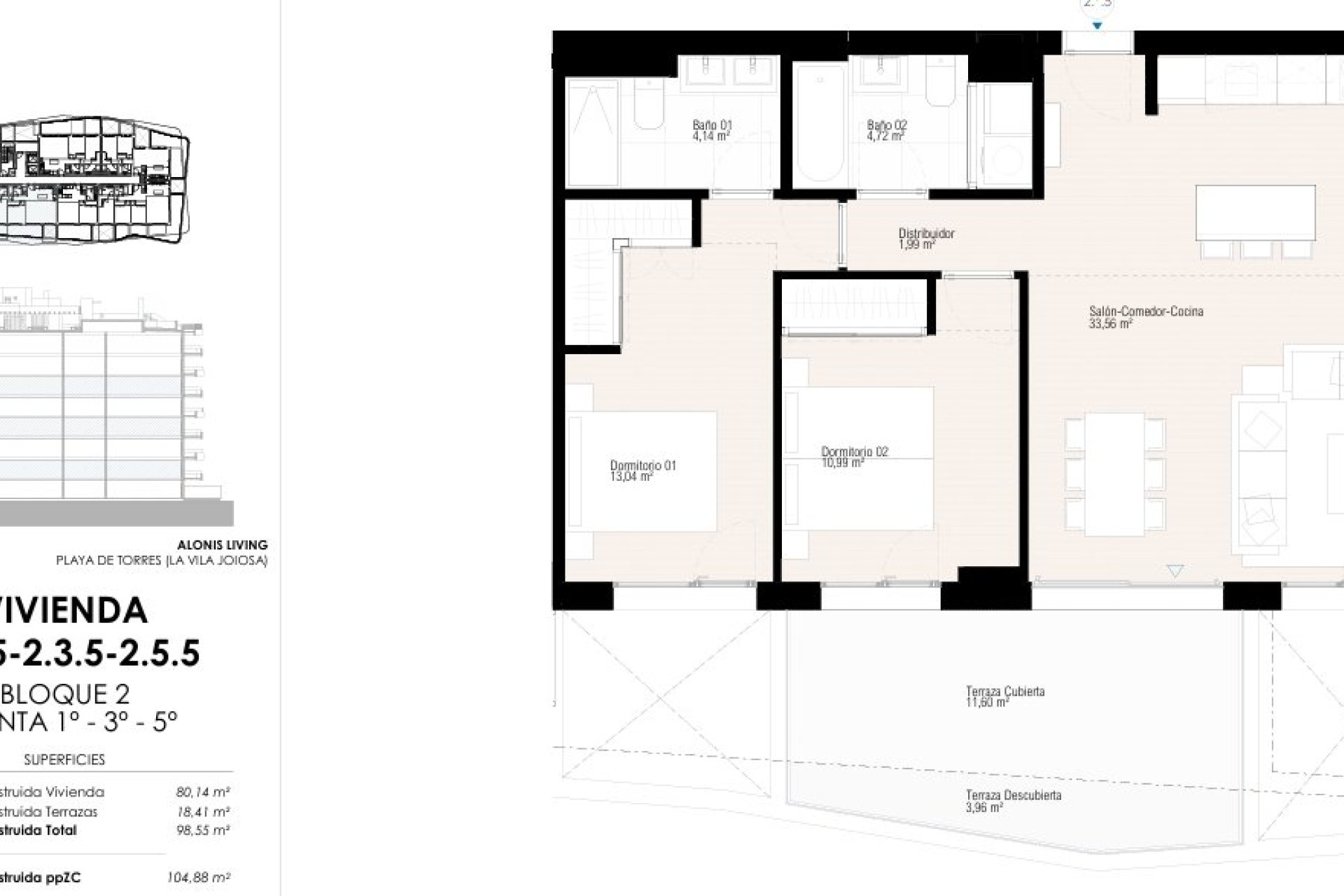 In the picturesque Vila Joiosa, there is a residential complex that Alicante Spain Properties proudly presents. With 71 available homes, it offers a selection ranging from apartments to ground floors and penthouses, each optimized for comfort and functionality. Its proximity to the sea, just 400 meters away, provides the opportunity to enjoy fresh air and stunning views. Whether for families or individuals, the options of one to three bedrooms and up to two bathrooms ensure that various housing needs are met.