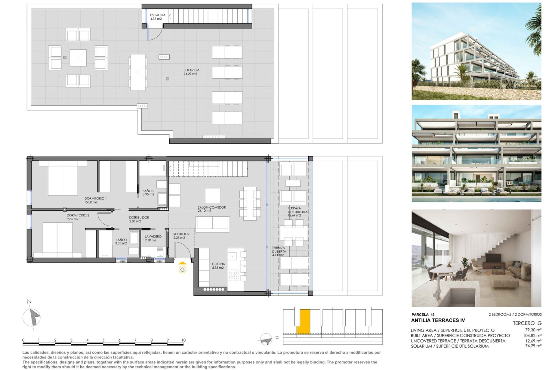 The interior of these properties is conceived to offer exceptional modernity and functionality. The ceramic floors not only add elegance but are also easy to maintain. The integrated appliances facilitate daily life while the built-in wardrobes optimize the available space, keeping everything organized. The layout options vary between 2 or 3 bedrooms with 2 bathrooms, adapting to different family configurations. The terraces and some solariums expand the living area, allowing you to enjoy the Mediterranean climate from home.