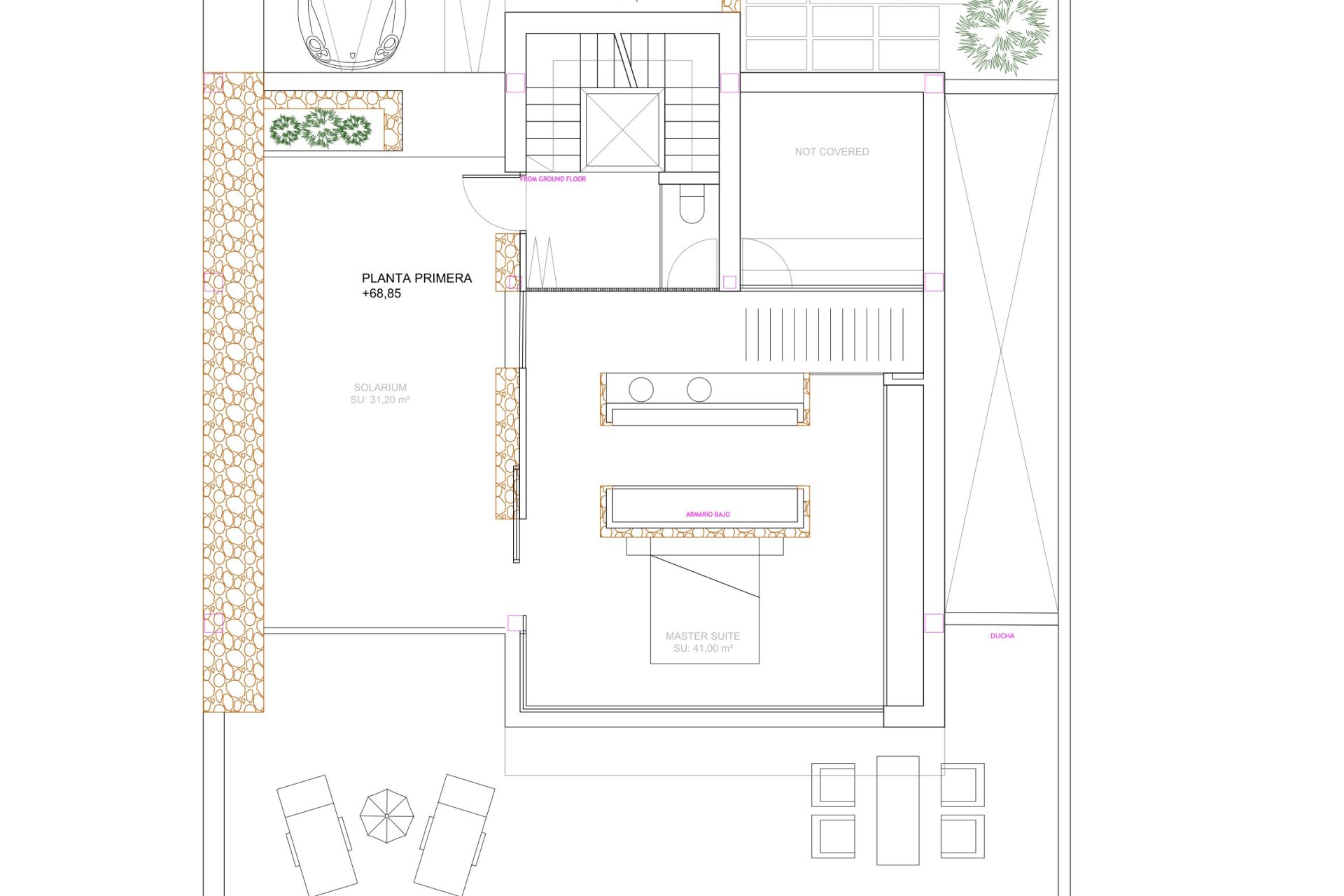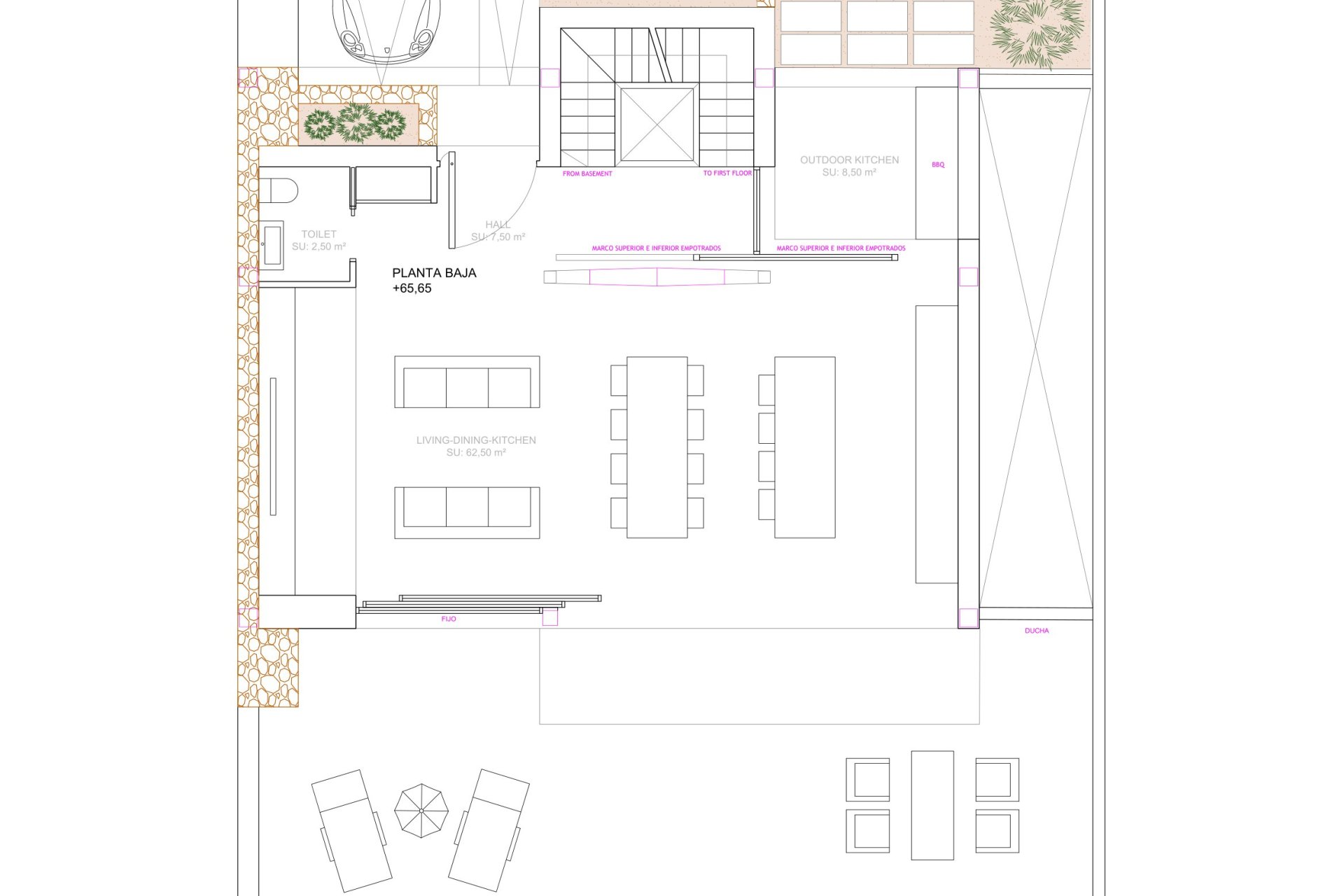 The villas in Rojales stand out for their exterior design that harmonizes the beauty of the natural landscape with modern amenities. They feature private gardens ideal for enjoying the Mediterranean climate and spacious terraces perfect for relaxing or entertaining while taking in the sea views. Each property includes a solarium that offers an elevated space to further appreciate the surrounding environment. Just 4.6 km from the sea, these homes allow for coastal walks and the sea breeze whenever desired.