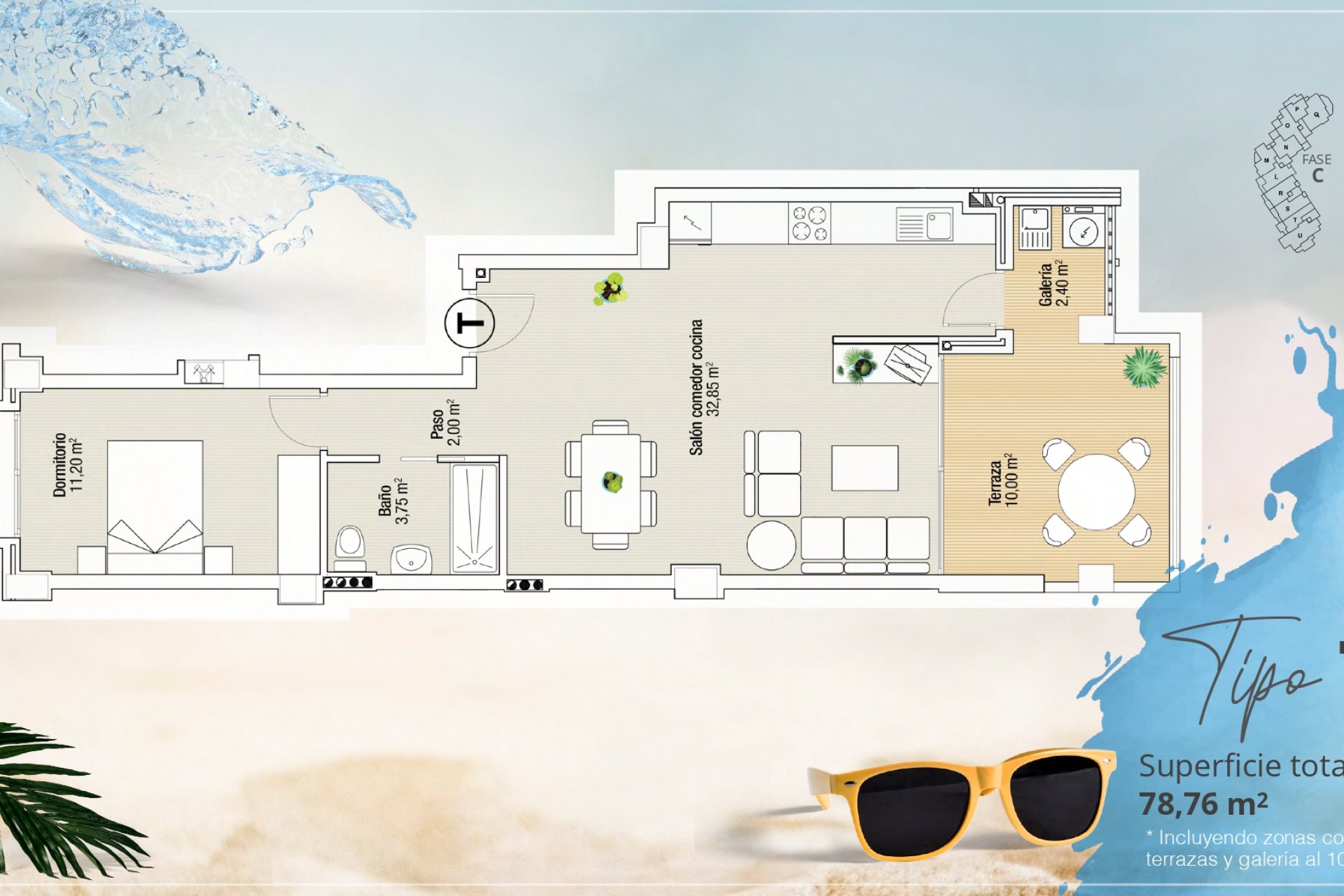 The interiors have been meticulously designed to ensure comfort and practicality. Available in configurations ranging from apartments to penthouses with 1 to 3 bedrooms and up to 2 bathrooms, these homes perfectly adapt to personal or family needs. Modern ceramic floors facilitate daily maintenance, while the air conditioning system and pre-installation ensure a perfect temperature throughout the year. Electric blinds along with the video intercom provide additional security, complemented by built-in wardrobes that maximize space organization.