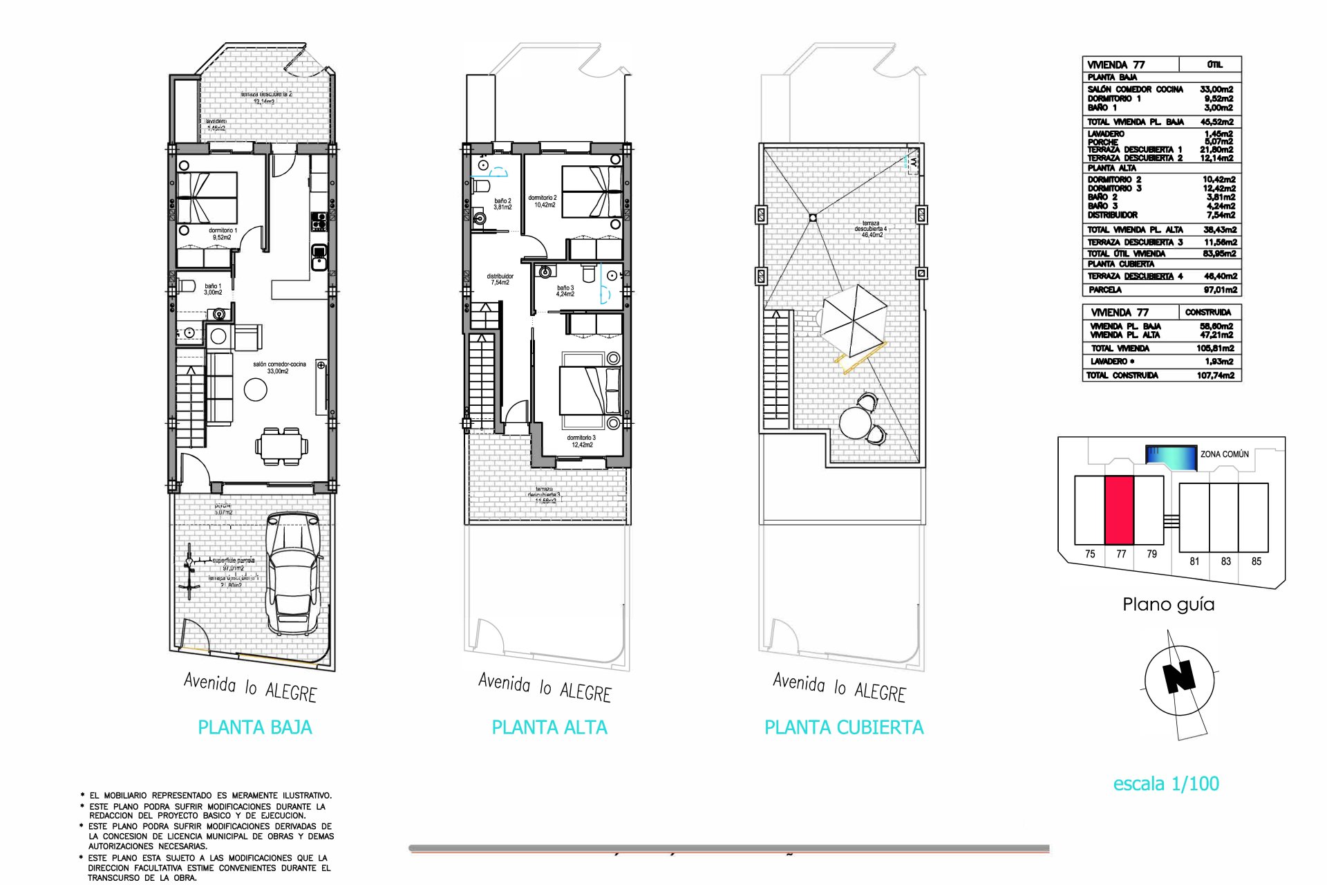 In the municipality of Pilar de la Horadada, Alicante Spain Properties presents an exclusive residential complex. This development consists of 21 properties including duplexes, semi-detached, and terraced houses, each designed to offer maximum comfort. The location is perfect for those who wish to enjoy the Mediterranean lifestyle, as it is only 3 km from the sea. Access to the nearest airport is just 43 km away, facilitating international and national connections. It is an ideal place for families and couples looking to live on the Costa Blanca.