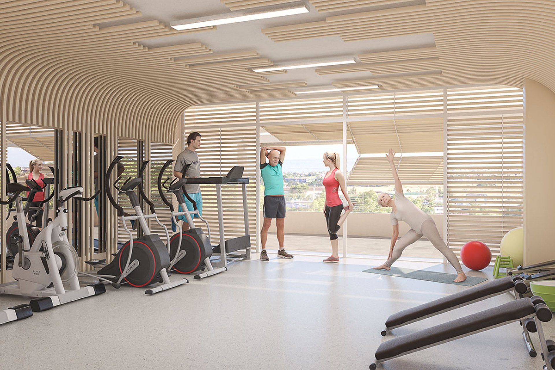 The common areas are designed with the well-being of residents in mind: spacious gardens invite relaxation in nature, a community gym allows for staying active, the community pool is ideal for cooling off, and garage parking options provide daily convenience. The common solarium is perfect for socializing under the sun in a select environment.