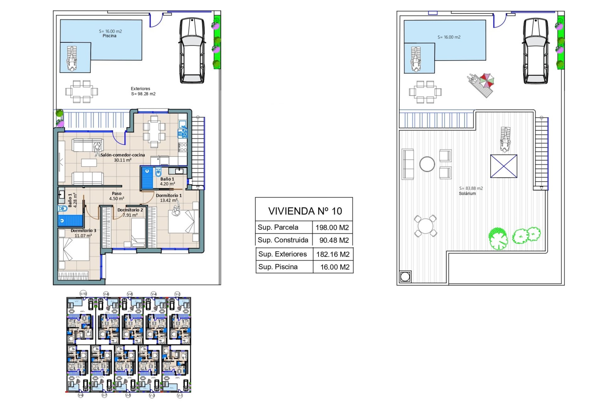 The exterior design of each home includes a charming private garden where enjoying the Mediterranean climate is a daily pleasure. The terraces and solariums provide ideal spaces for outdoor leisure, while the private pool in each property adds a distinctive touch of luxury, offering unique moments of relaxation without leaving home.