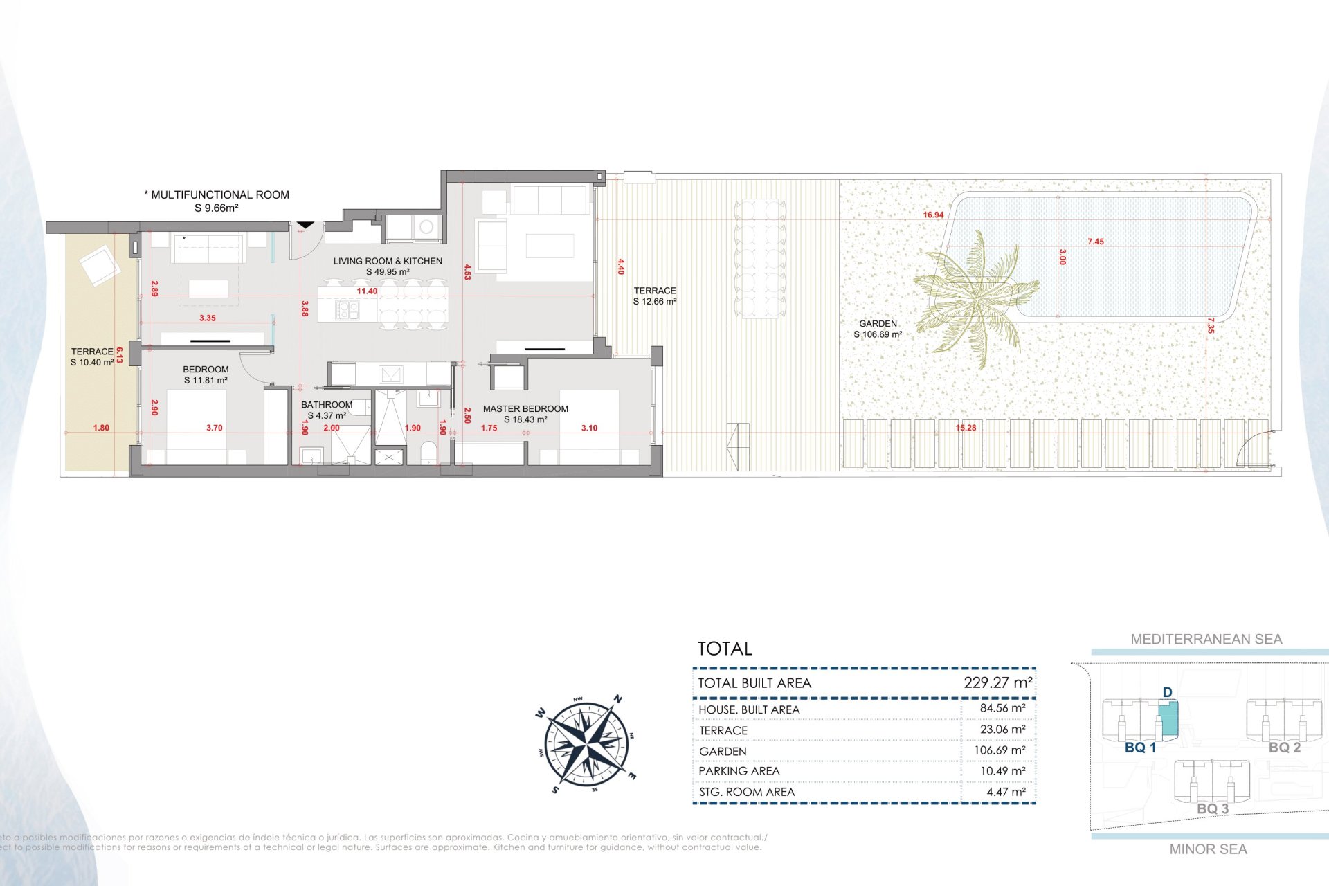 The exterior design of this development is intended to make the most of its privileged location. Each property includes a private garden perfect for moments of outdoor relaxation. Spacious terraces allow you to appreciate the maritime horizon while enjoying the mild climate. Some homes also offer private solariums, ideal for relaxing under the sun or stargazing at night. Being beachfront, the sea breeze and panoramic views are part of everyday life.