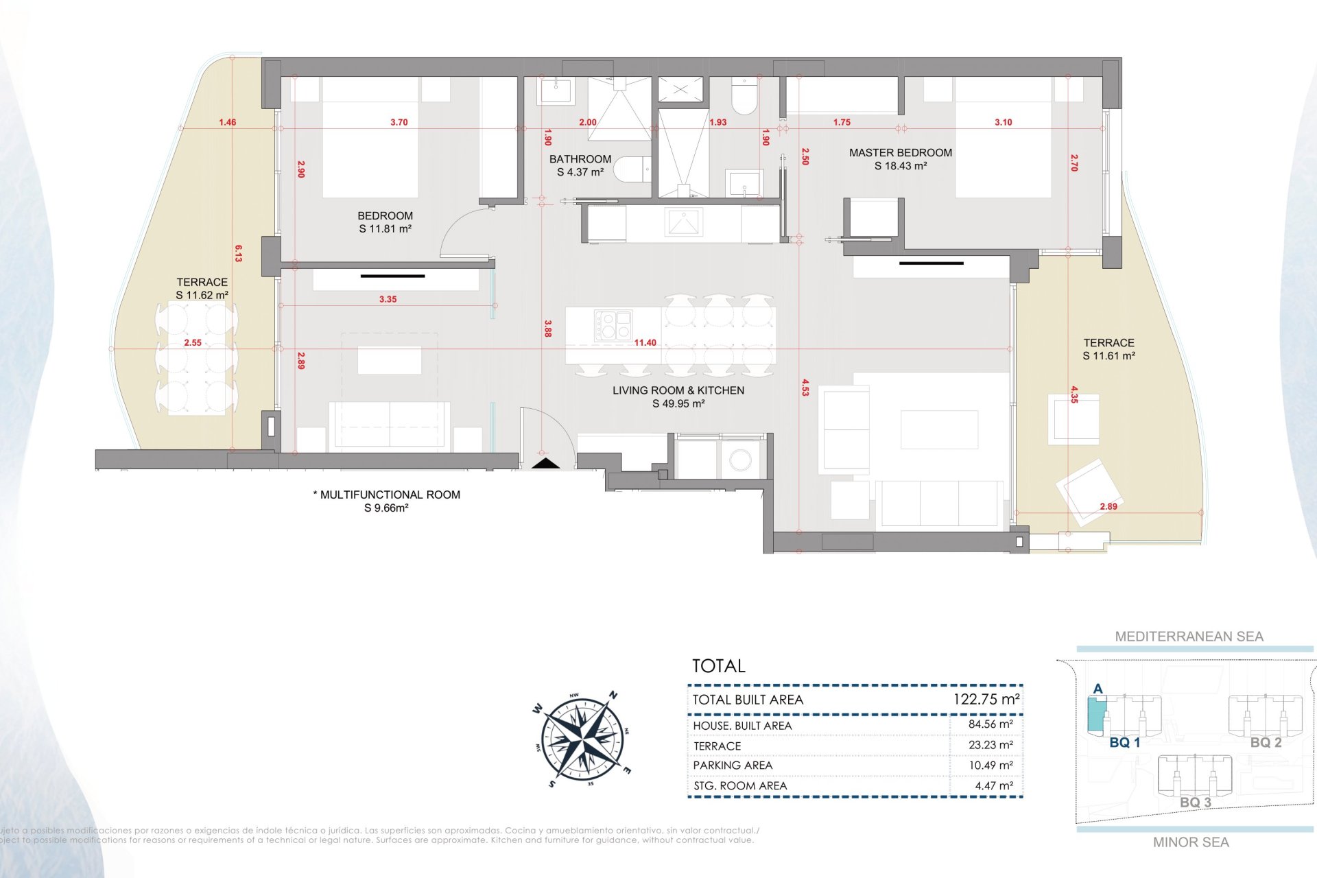 The exterior design of this development is intended to make the most of its privileged location. Each property includes a private garden perfect for moments of outdoor relaxation. Spacious terraces allow you to appreciate the maritime horizon while enjoying the mild climate. Some homes also offer private solariums, ideal for relaxing under the sun or stargazing at night. Being beachfront, the sea breeze and panoramic views are part of everyday life.
