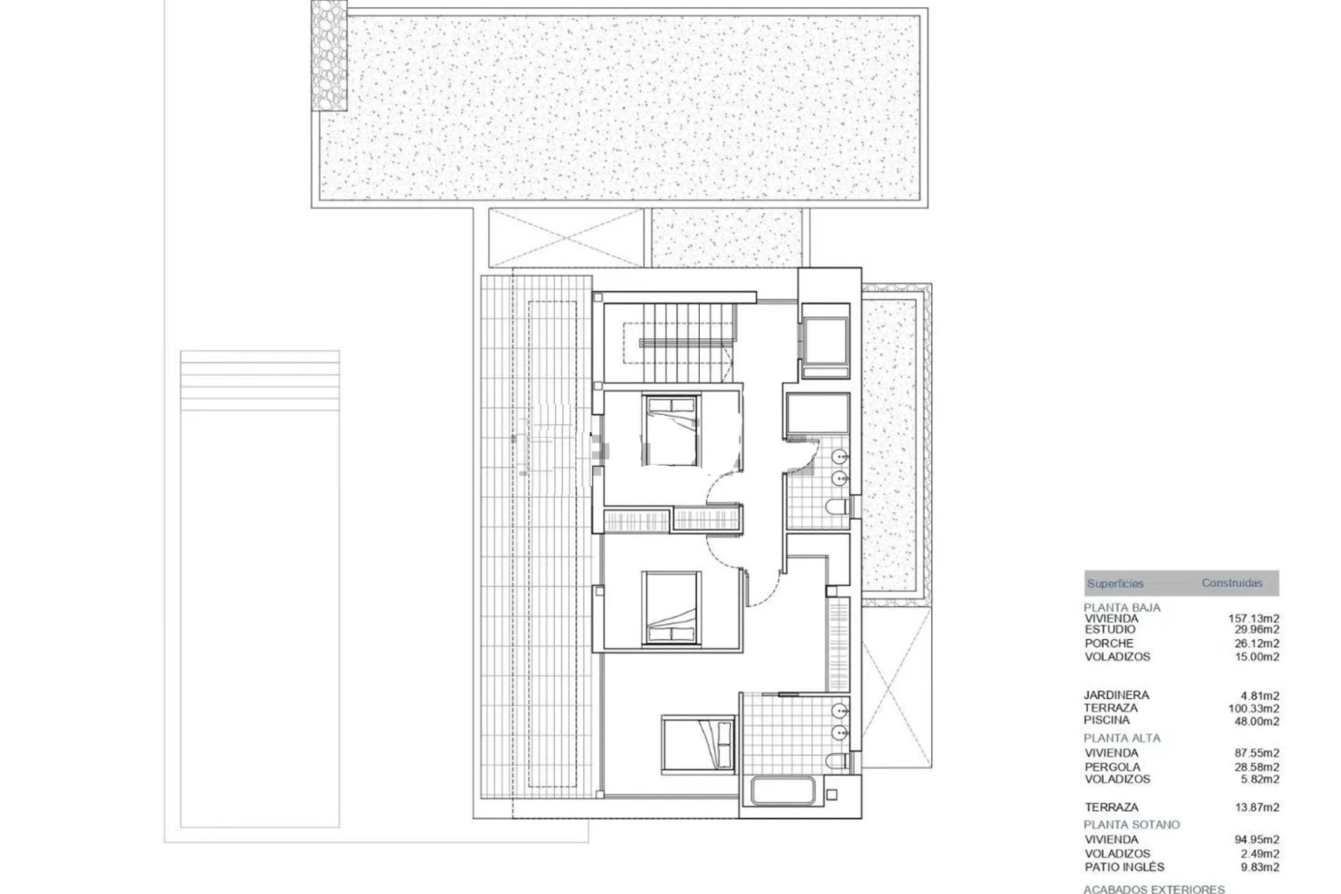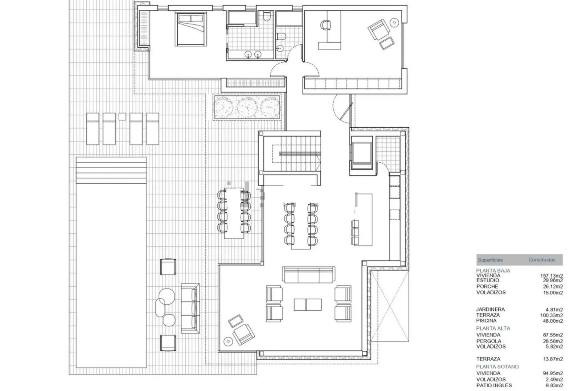 The exterior of this villa is designed to make the most of the Mediterranean climate. Enjoy a private garden where you can relax or engage in outdoor activities. The private pool adds an exclusive touch, allowing you to cool off on sunny days or spend relaxed afternoons by the water. Additionally, a spacious terrace invites you to enjoy al fresco dining or simply contemplate the views of the natural surroundings.