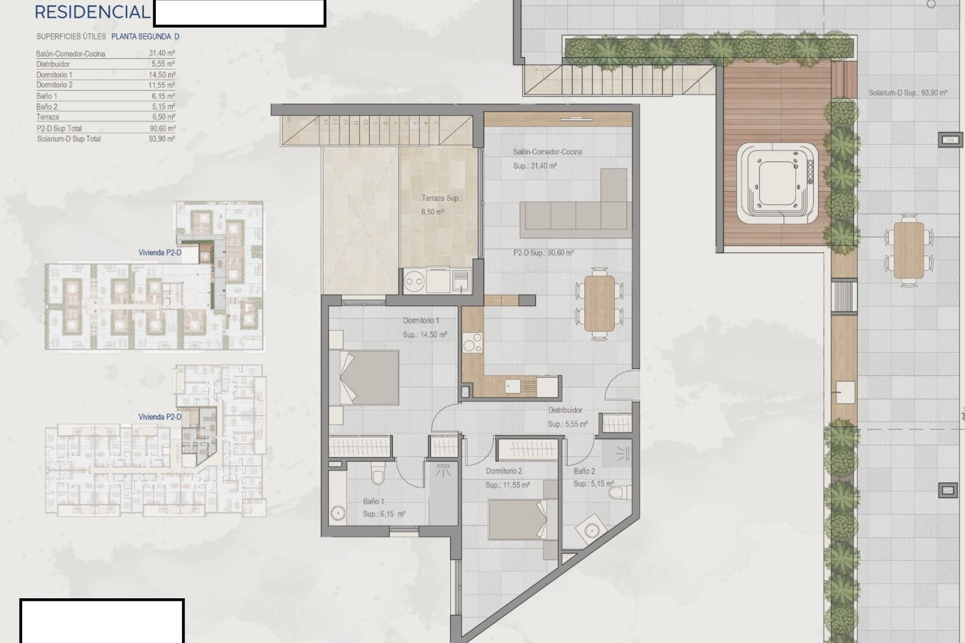 Alicante Spain Properties presents an exclusive residential complex in Torre-Pacheco, consisting of 21 units between apartments and penthouses. This enclave offers the tranquility of a serene environment without sacrificing modern comforts. Located just 25 km from the nearest airport, it ensures excellent connectivity for those who value quick access to air transport. With options of 2 or 3 bedrooms and 2 bathrooms, these homes have been designed with comfort and functionality in mind, adapting to various family needs.