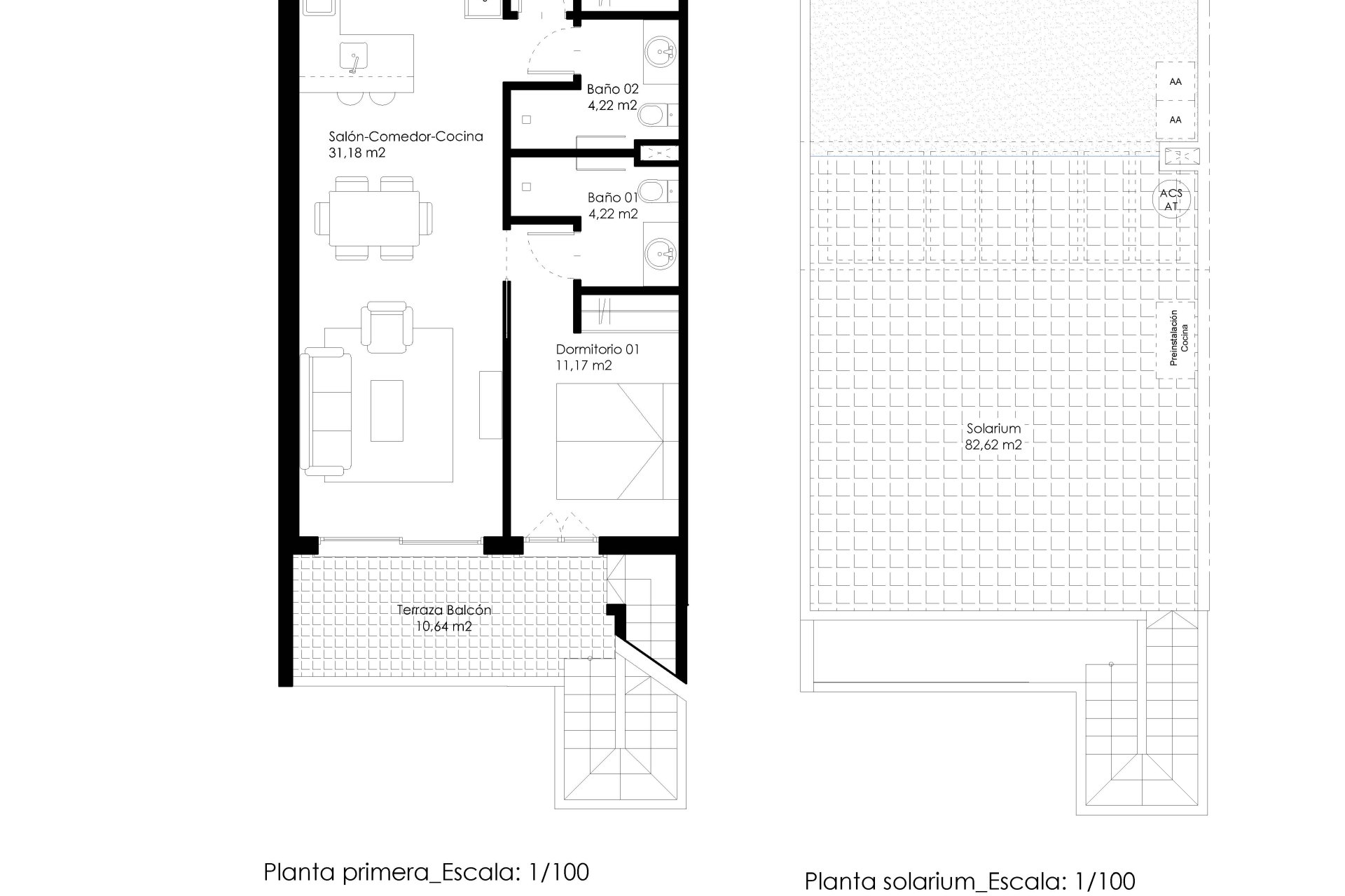 The models with solarium offer an additional area perfect for sunbathing or relaxing while enjoying the surrounding landscape. Its location facilitates access to both the beaches and local services, making it an attractive option for permanent or vacation residence near the sea.