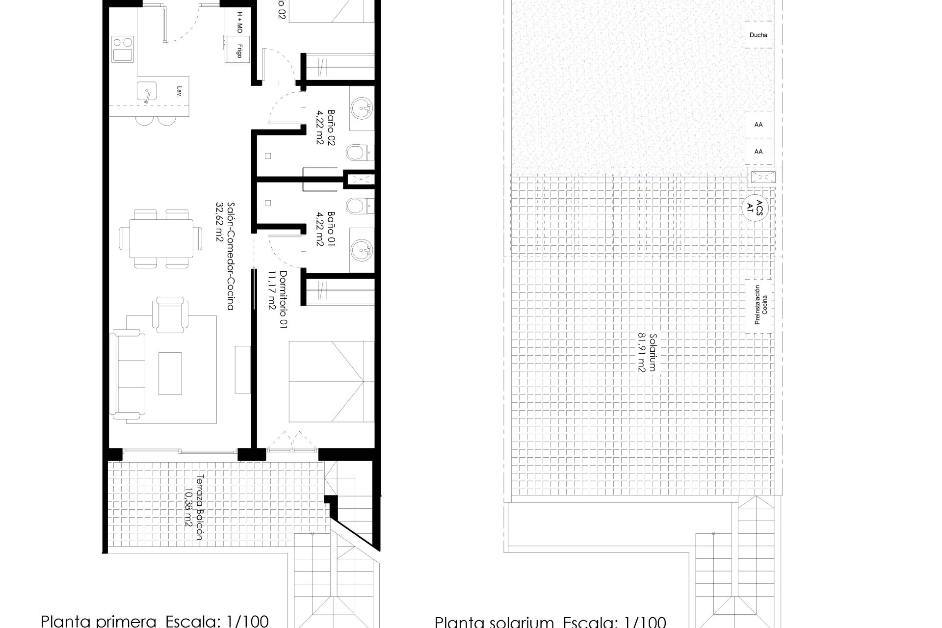 The models with solarium offer an additional area perfect for sunbathing or relaxing while enjoying the surrounding landscape. Its location facilitates access to both the beaches and local services, making it an attractive option for permanent or vacation residence near the sea.