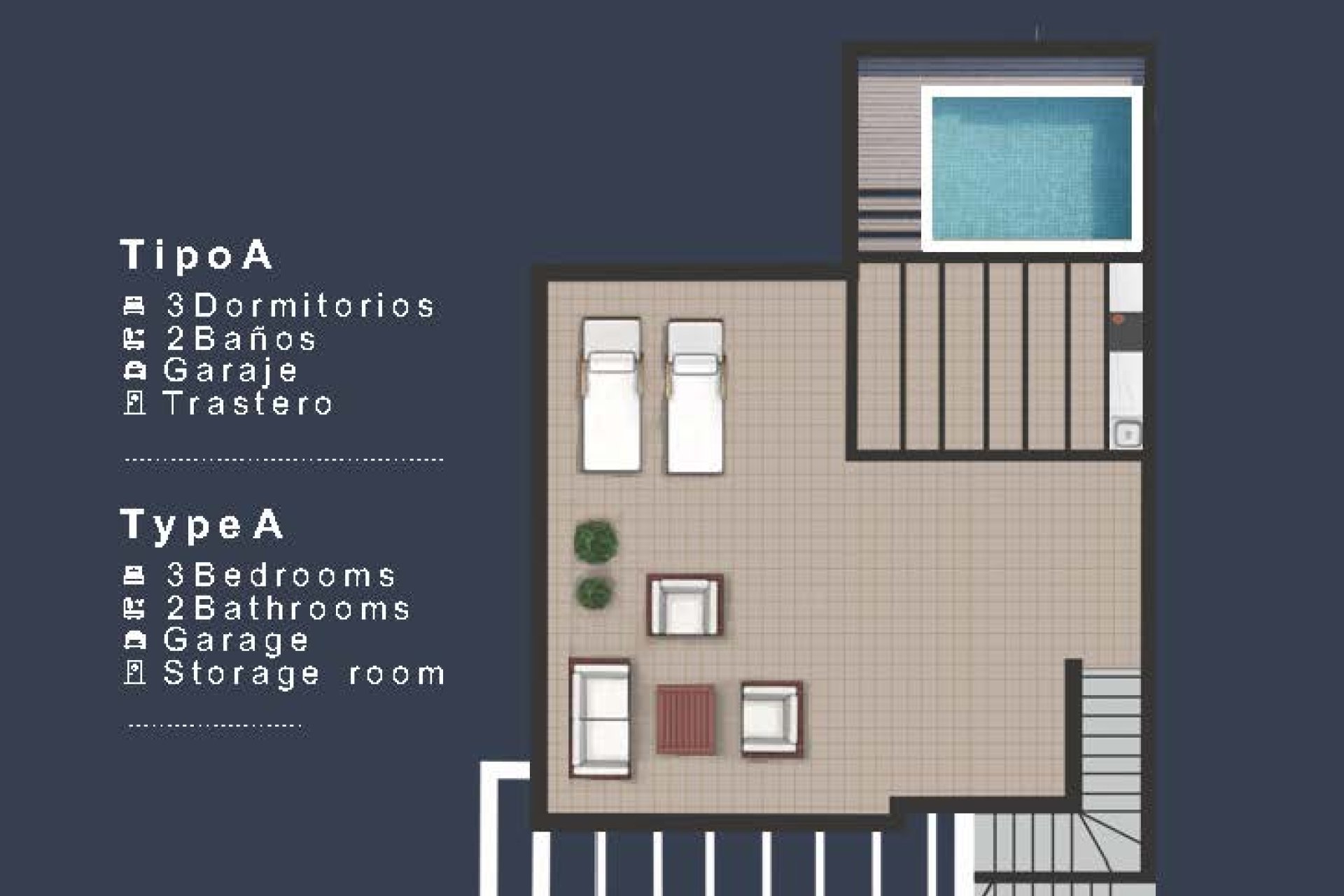 In San Pedro del Pinatar, the residential complex of Alicante Spain Properties offers 10 exclusive bungalow-type homes. With options ranging from solarium to garden, these properties are ideal for those seeking comfort and functionality near the sea, just 2 km away. The proximity to the airport, located 43 km away, facilitates frequent travel. The different configurations allow for a choice between 2 or 3 bedroom homes, adapting to various family needs.