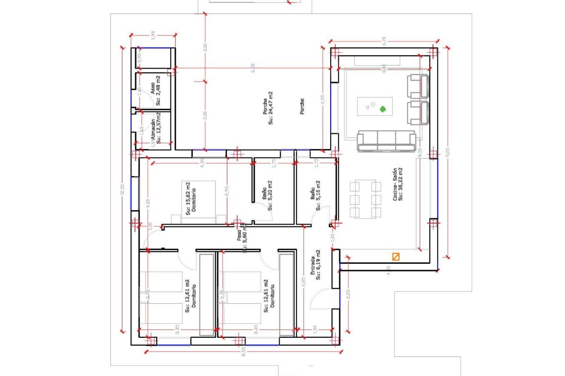 The interior is carefully designed to maximize comfort and functionality in these independent homes located in La Canalosa. With three bedrooms and two well-distributed bathrooms, every corner is intended to provide well-being to its inhabitants. The built-in wardrobes in the bedrooms optimize storage while keeping everything organized.