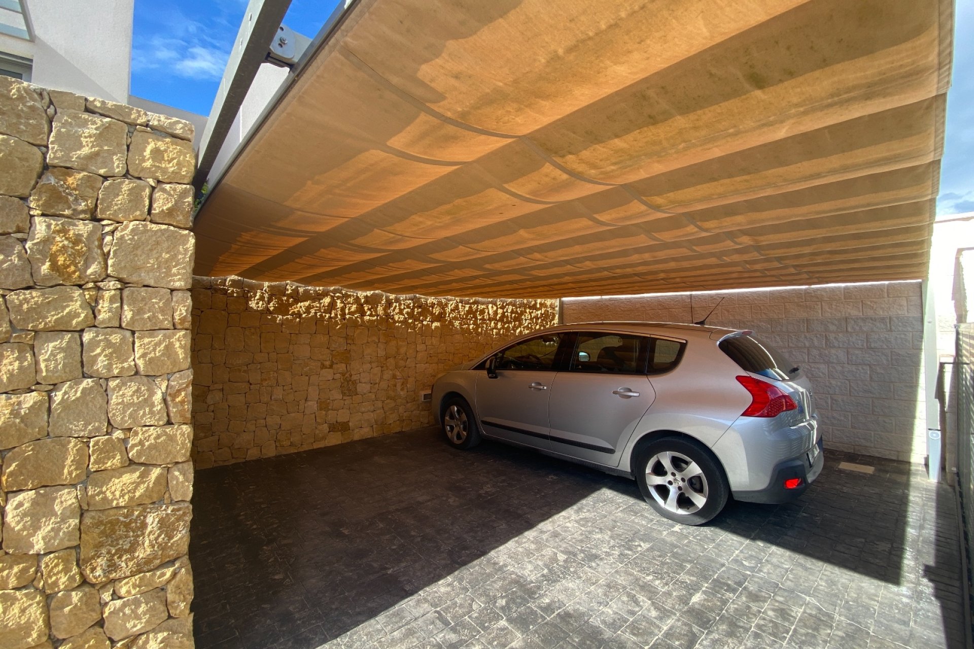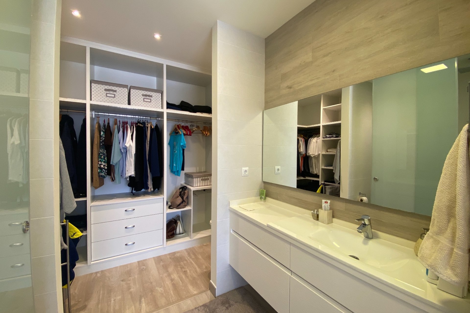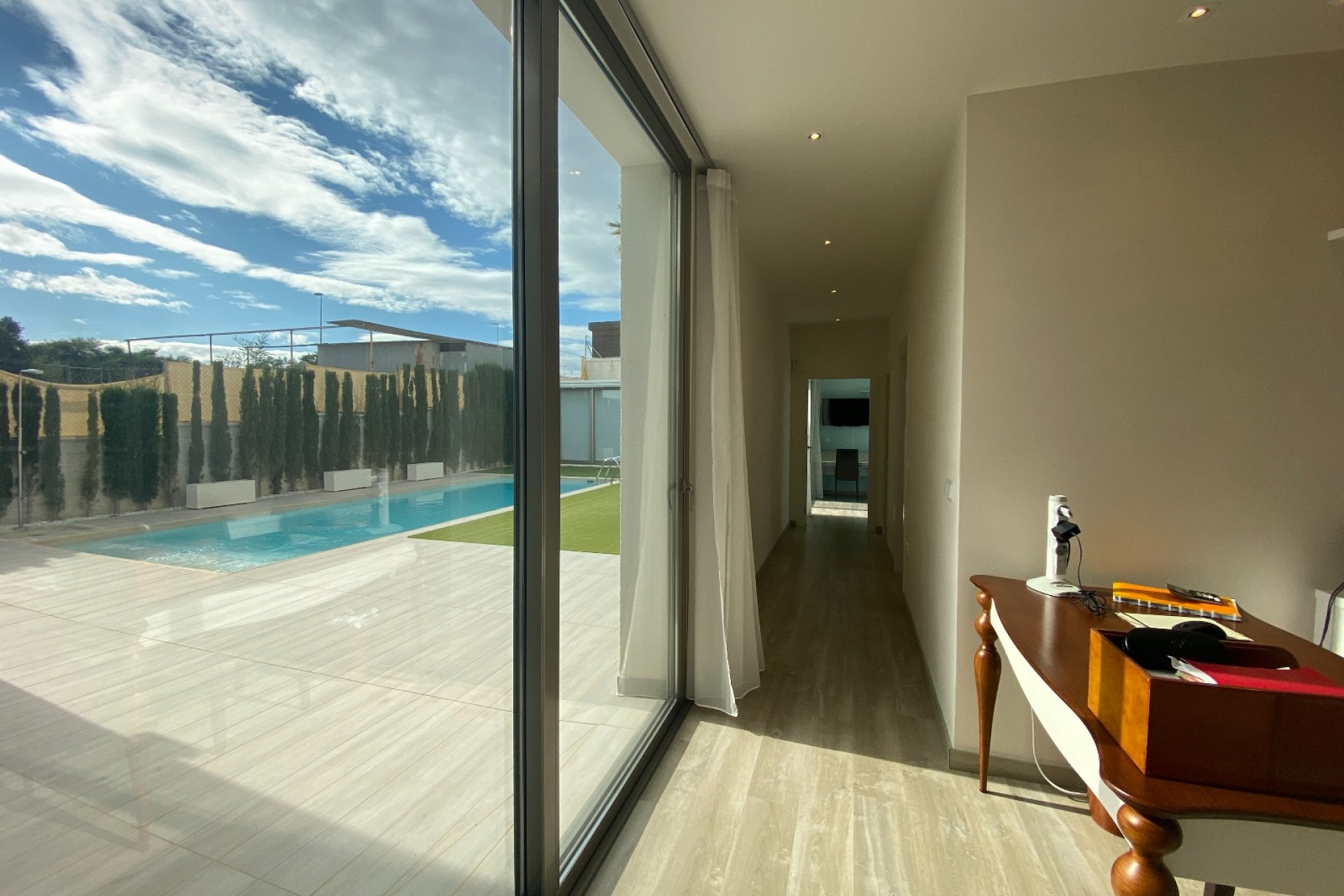 This beautiful modern villa is located in Benijofar. Within walking distance of all amenities, Cañada Marsa Natural Park, close to Agua Park Quesada and La Marquesa Golf in Rojales. The villa was built in 2006 and is on one level. Outside there is a (heated) private swimming pool, low-maintenance garden, covered parking for two cars, several places where you can enjoy the sun and a large closed space that could be turned into a fourth bedroom or an office space. The house has a large bright living and dining room with fireplace. A sleek open kitchen with utility room. There are 3 double bedrooms, all with fitted wardrobes. The 2 bathrooms have underfloor heating, heated towel rails and 1 has a bath. The master bedroom has an en-suite bathroom and a walk-in closet. Ducted air conditioning hot/cold with air freshener. This villa is sold fully furnished. Benijófar is a typical Spanish village with a variety of services such as bakeries, supermarkets, pharmacies, medical center, mini golf, shopping centers, bars and restaurants. Located approximately 30 minutes from Alicante Airport, 15 minutes from the beaches in Guardamar. La Zenia boulevard and Habaneras shopping centers are also within easy reach.