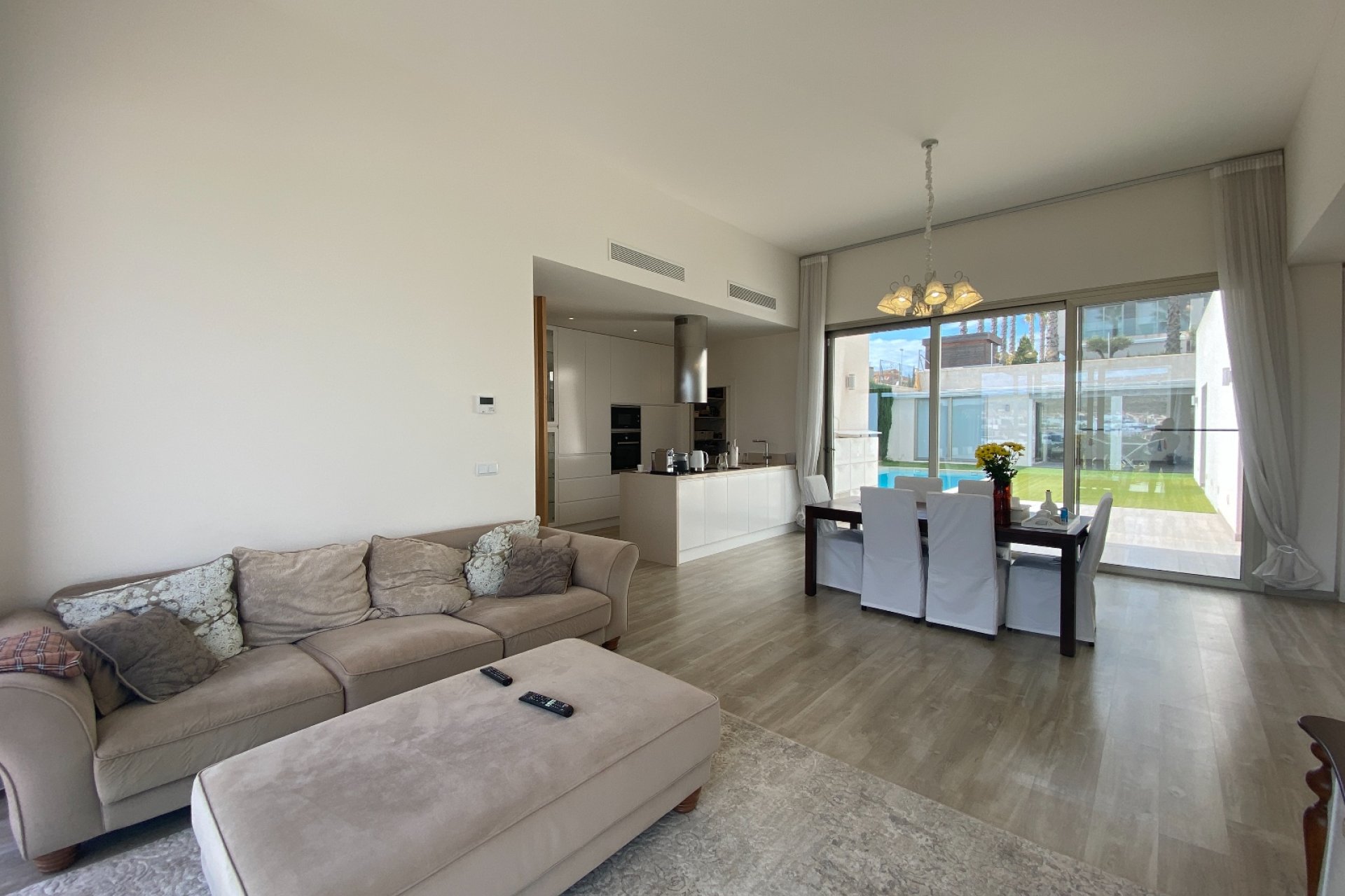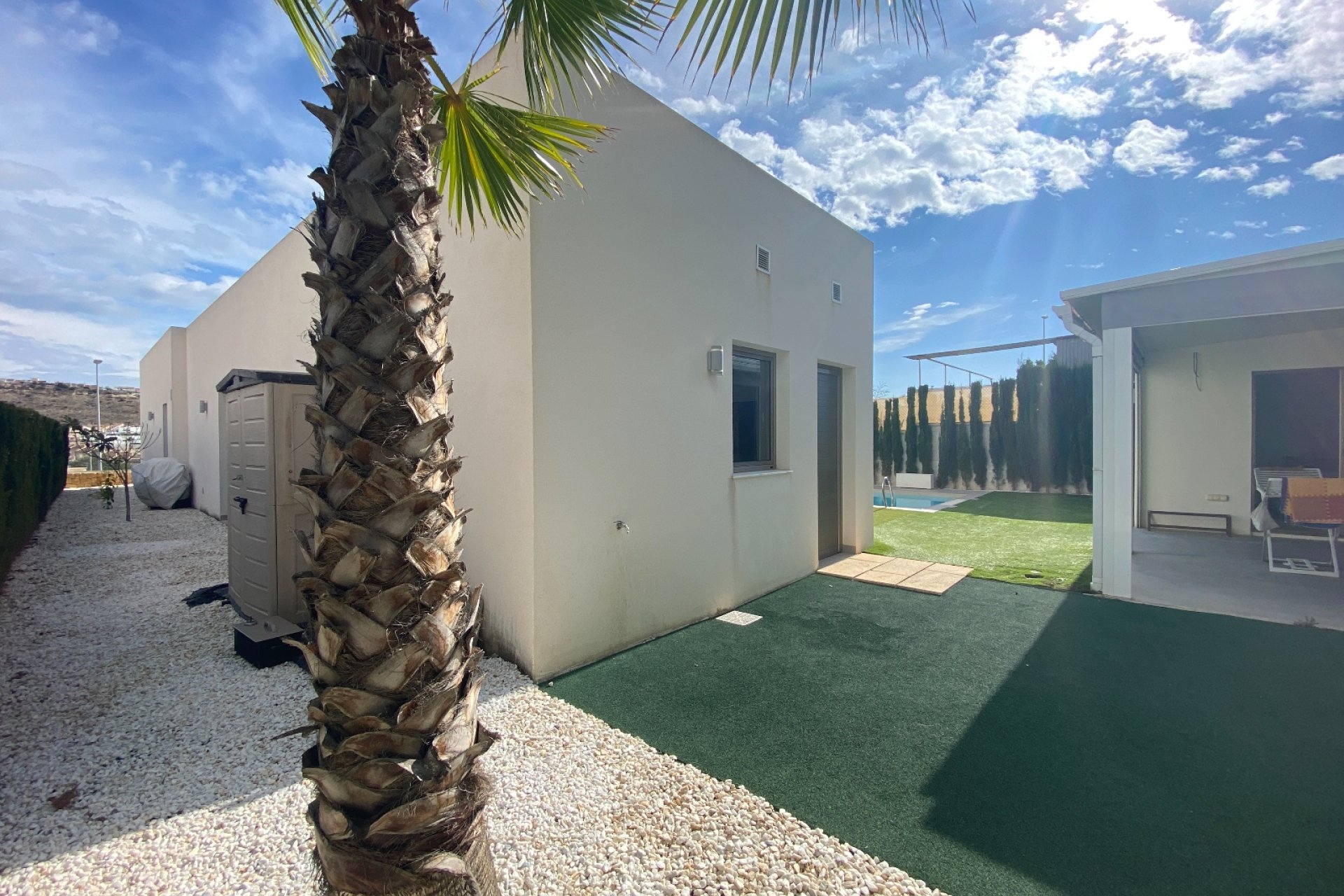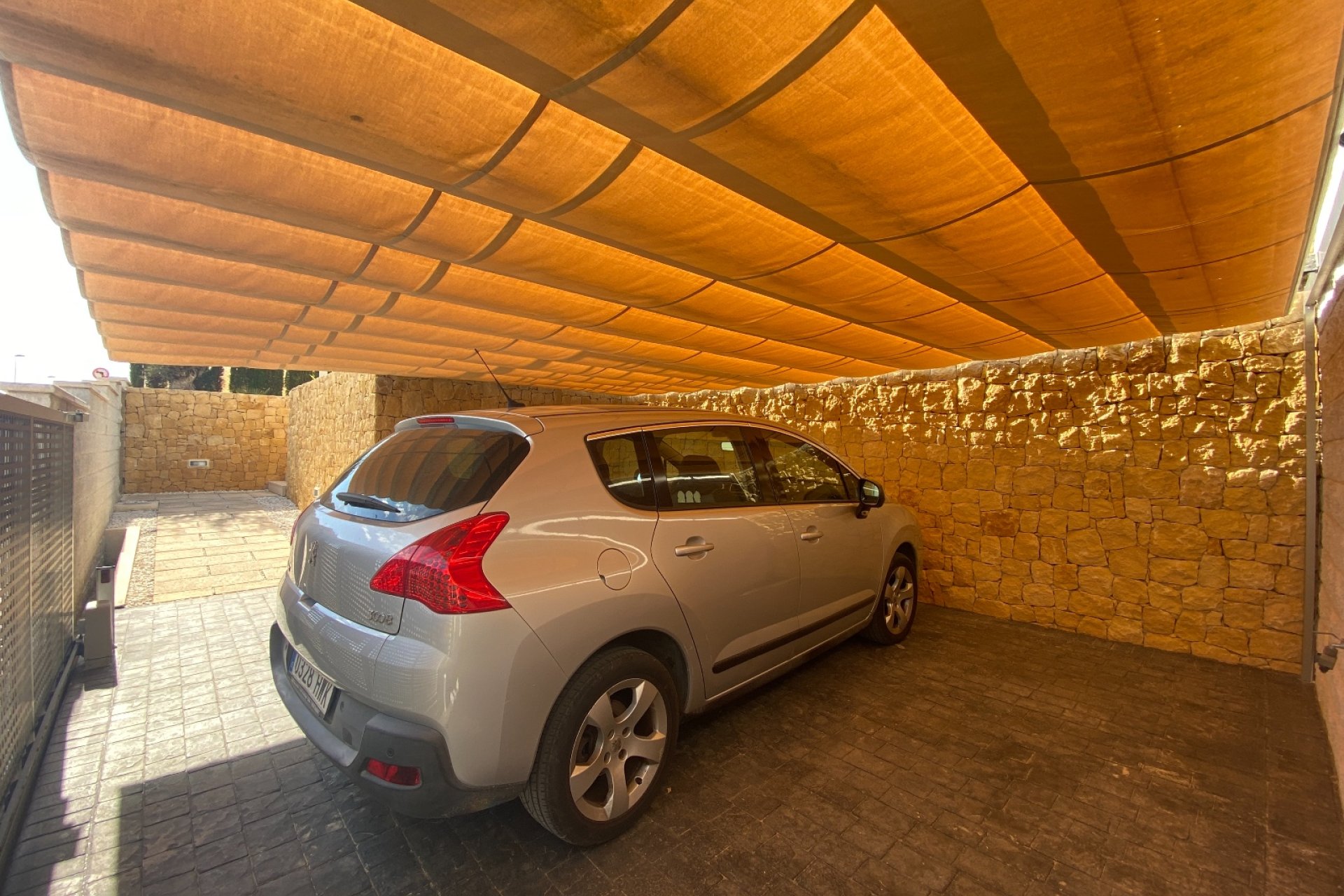 This beautiful modern villa is located in Benijofar. Within walking distance of all amenities, Cañada Marsa Natural Park, close to Agua Park Quesada and La Marquesa Golf in Rojales. The villa was built in 2006 and is on one level. Outside there is a (heated) private swimming pool, low-maintenance garden, covered parking for two cars, several places where you can enjoy the sun and a large closed space that could be turned into a fourth bedroom or an office space. The house has a large bright living and dining room with fireplace. A sleek open kitchen with utility room. There are 3 double bedrooms, all with fitted wardrobes. The 2 bathrooms have underfloor heating, heated towel rails and 1 has a bath. The master bedroom has an en-suite bathroom and a walk-in closet. Ducted air conditioning hot/cold with air freshener. This villa is sold fully furnished. Benijófar is a typical Spanish village with a variety of services such as bakeries, supermarkets, pharmacies, medical center, mini golf, shopping centers, bars and restaurants. Located approximately 30 minutes from Alicante Airport, 15 minutes from the beaches in Guardamar. La Zenia boulevard and Habaneras shopping centers are also within easy reach.