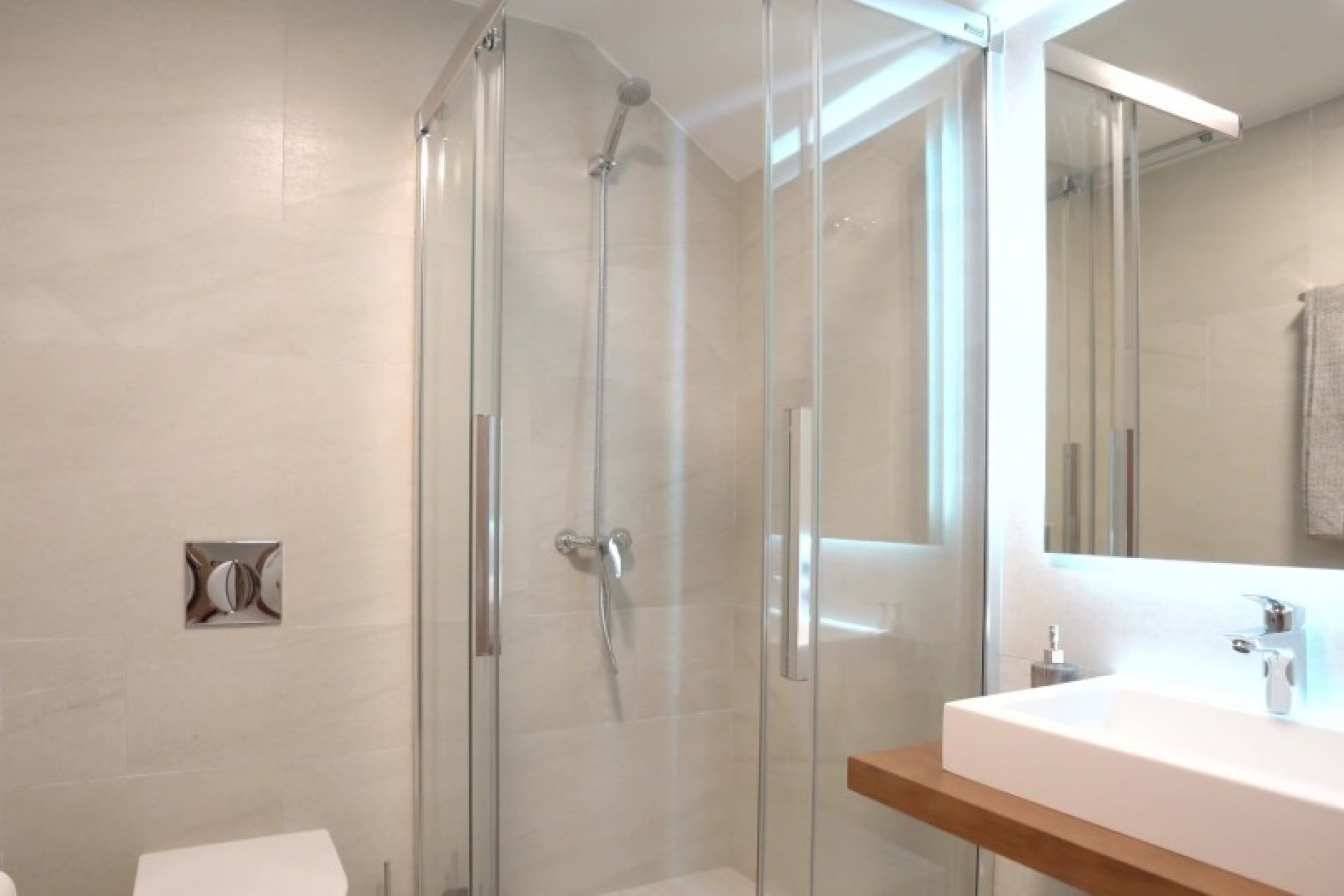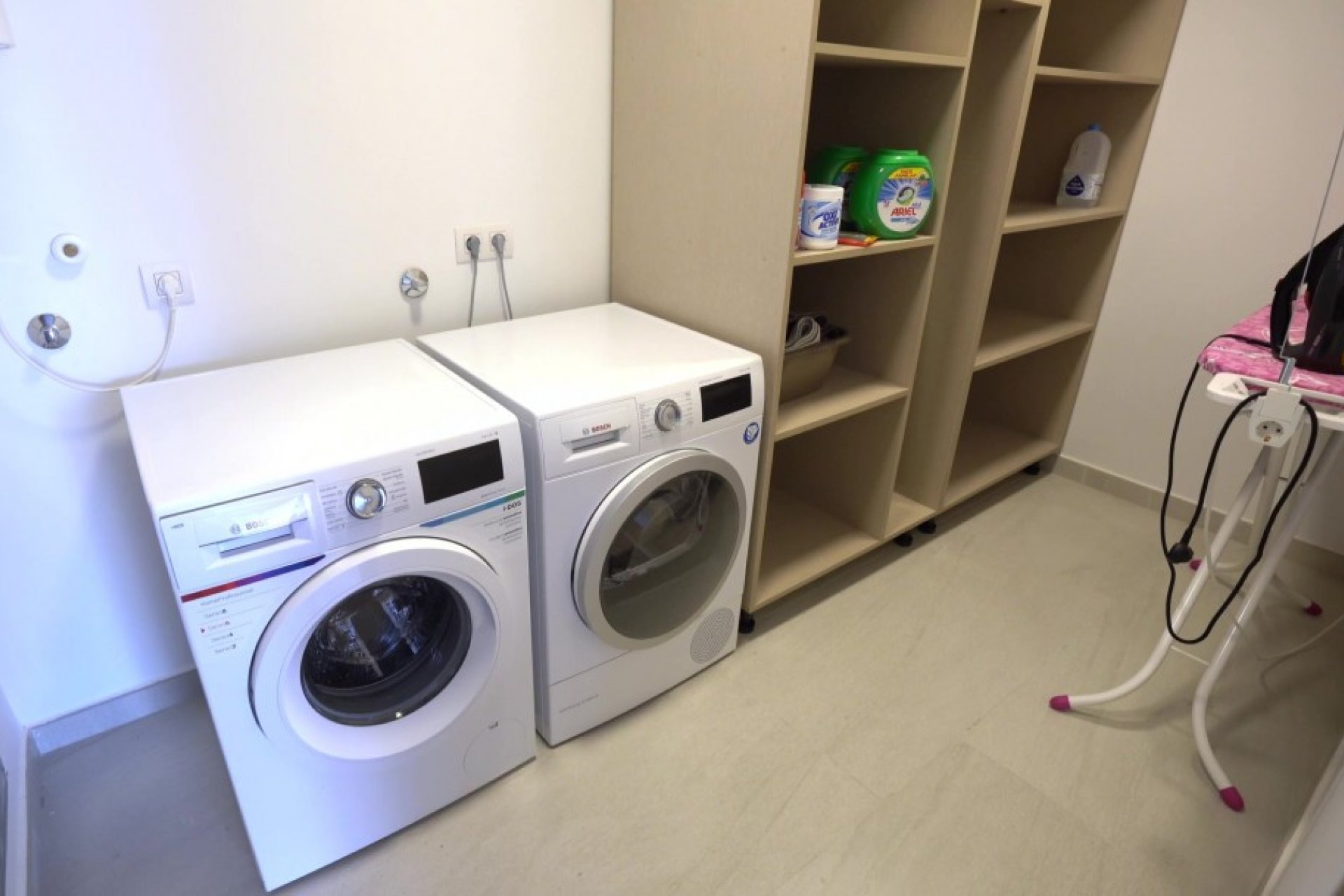 The distribution provides everything necessary to guarantee the comfort of each member of the family. On the ground floor of the house there is a spacious living room, an elegant kitchen with appliances and an island with a Bosch brand ceramic hob and integrated smoke hood. There is also a cozy bedroom with a built-in wardrobe and access to the garden and a private bathroom with a shower. On the second floor there is: a master bedroom with a private bathroom, two built-in wardrobes and access to a terrace with views of the sea and the city of Benidorm, two more bedrooms with built-in wardrobes, one of the bedrooms with access to the terrace, and a separate bathroom with shower. All bathrooms with high quality Vileroy & BOCH toilets, Hansgrohe taps. In the basement there is another bathroom, laundry room, large multipurpose room and garage. Outside there is a beautiful and large garden (palm trees, olive trees and aromatic shrubs such as lavender), artificial grass, private pool with lighting and a cleaning system.