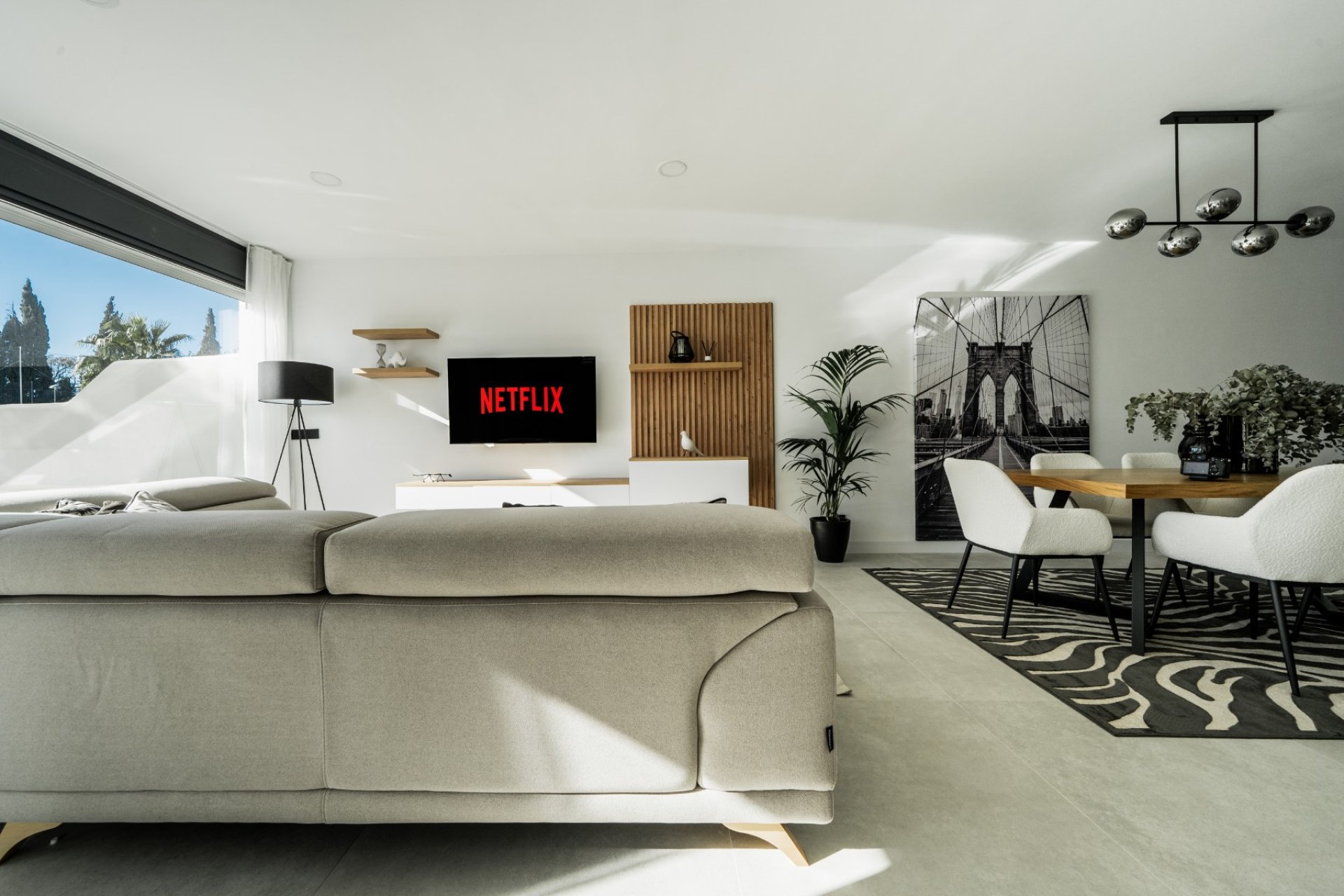 In the sought-after Los Pinos de Aloha, discover this townhouse with 3 bedrooms, 4 bathrooms, and a southfacing orientation with direct pool access. The property unfolds across four terraces, offering varied views, including a top terrace with views of the sea. Fully renovated for modern living, the townhouse features double-glazed windows, electrical awning, and shutters. This gated community residence is well located, close to Aloha College and Golf Club, and just a brief 5-minute drive from Puerto Banus and other amenities.