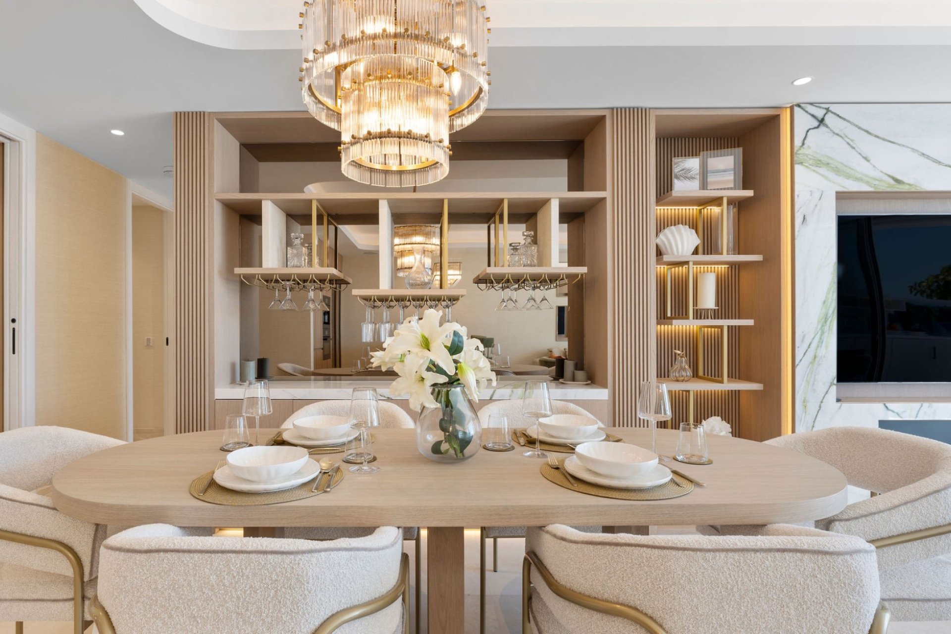 Boasting sleek and contemporary design elements throughout, the apartment