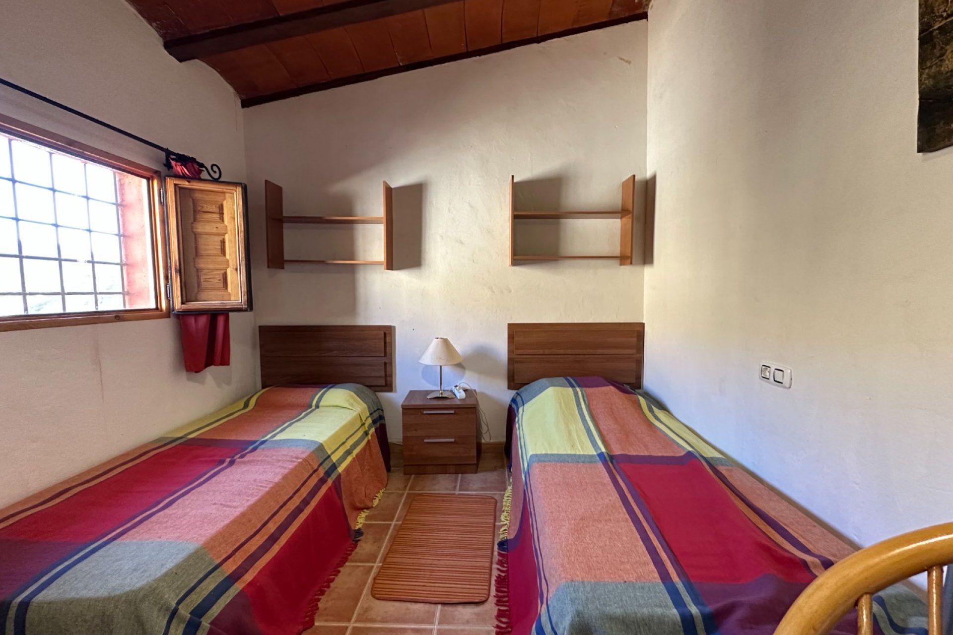 A rare and unique opportunity to acquire an ancient water mill conversion presently running as a fully equipped and compliant Casa Rural with swimming pool, parking and so many interesting features make this a one-off prestige property in a very spectacular privileged private valley location complete with a stream, a waterfall and a magical turquoise lagoon alongside this very substantial property. Access from the tarmac road to the private drive and electric gated entrance leading to the parking area for 6/7 cars including a double car port and outbuildings housing the solar electric system batteries etc. The main entrance leads in a reception lounge which leads to the grand dining room with many original features including the large feature fireplace, which leads to the kitchen. A fully fitted kitchen with all appliances leads to the private accommodation comprising a studio style bedroom with fully fitted en-suite shower room. There are 6 very quaint and quirky double bedrooms all with en-suite or private fully fitted shower/bathroom facilities, each bedroom with individual character and charm. Steps to a recreational lounge complete with bar and seating, original sink and fireplace, beer cooler etc, leading to a bar lounge with the original stone grinding wheel as the centre feature, access to the underground cave bodega, fitted seating, library of international books, leads out to the large fully glazed conservatory style sun room with spectacular views leading out to a spacious sunny terrace complete with a BBQ, exterior bar and a charming vine covered pergola for shade seating area. In addition is a fully equipped summer kitchen BBQ, wood oven, gas grill, beer chillers and fridge providing ample facilities for a small or large gathering to enjoy. This amazing property is for sale fully furnished throughout with all items and equipment included, internet WIFI and cameras are connected and is packed with original charm in all areas throughout. Outside there are various sunny view point terraces including the swimming pool terrace with shower and sun bathing areas, a children’s play area, ancient olive and pine trees frame the plot and in addition various fruit trees, vegetable patch and wonderful walks including leading down to the waterfall, lagoon and stream. Mains drinking water is connected and also is a reserve water tank and irrigation water is provided from a natural spring well. Mains electric is connected and also solar electric panels and batteries providing 3Kw free power. All rooms benefit from electric radiators installed and also air conditioning.