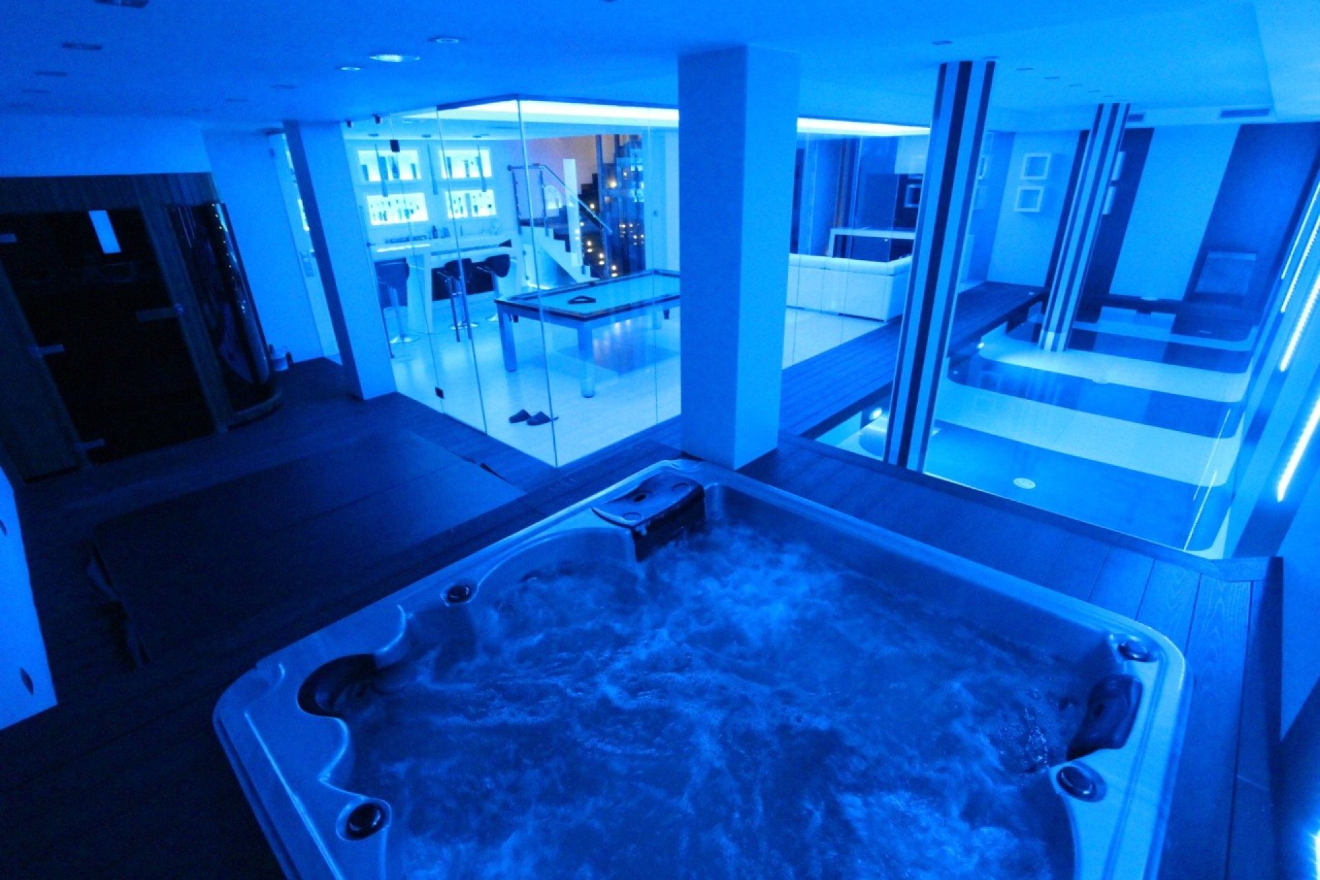 Entertainment and relaxation abound with a wine cellar, billiards room, home theater and cocktail bar stand. Come out and enjoy the heated pool or relax in the Jacuzzi on the solarium, which offers panoramic views.