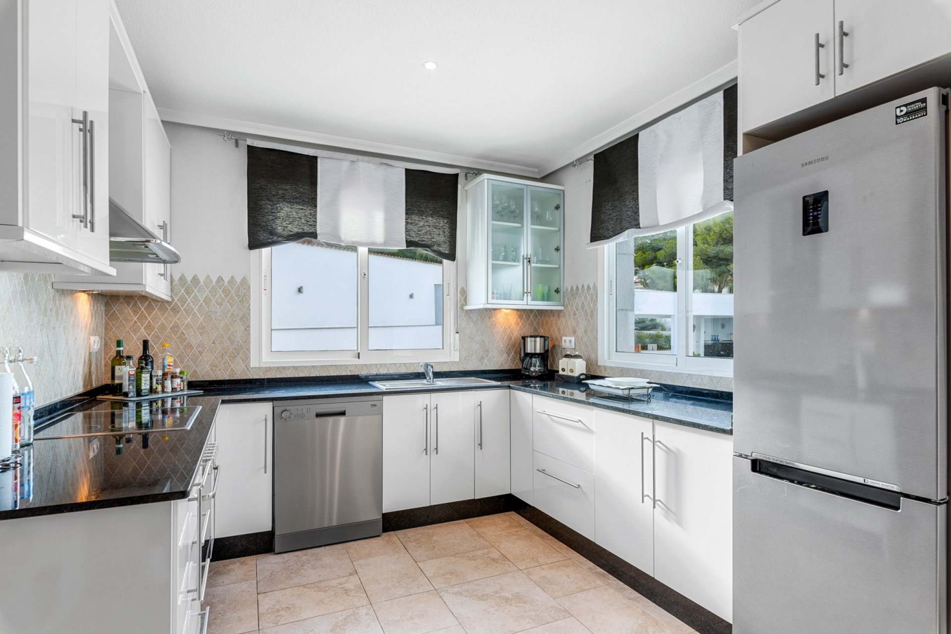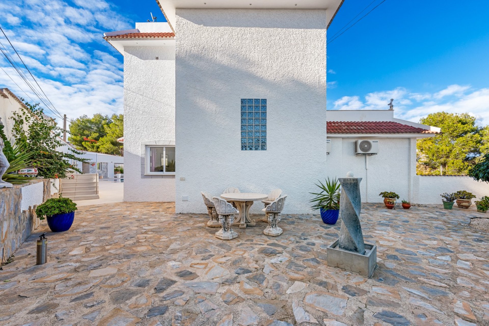 This property has many good qualities, and has been modernized recently. The plot is 1,423 m2, and there is the possibility of building more bedrooms if desired. There are 6 bedrooms in the house and 5 bathrooms, one of which is by the pool area. The garden is tiled, and the private swimming pool was completely renovated just a few years ago, with a jacuzzi and table, where you can cool off on hot summer days. In the garden there is an outdoor kitchen, seating areas and a pool table.