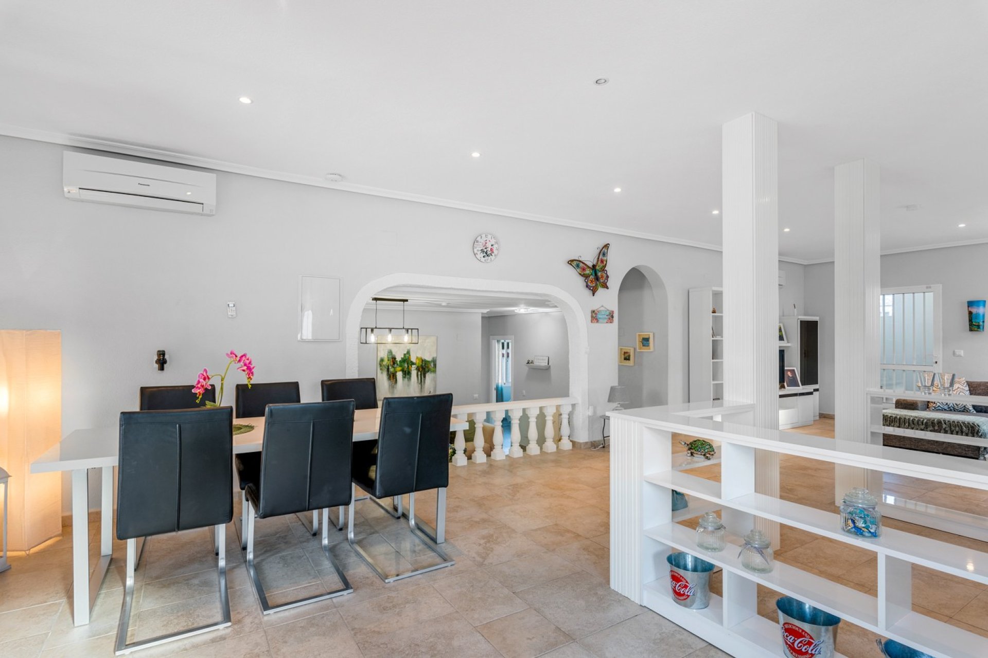 Unique large villa with 6 bedrooms, in the heart of San Miguel de Salinas. The house is located on the south side of the Costa Blanca, in the middle of an urbanization outside the city of San Miguel, which is located between Torrevieja and Murcia. Just a short drive to La Zenia, Villa Martin and Torrevieja.