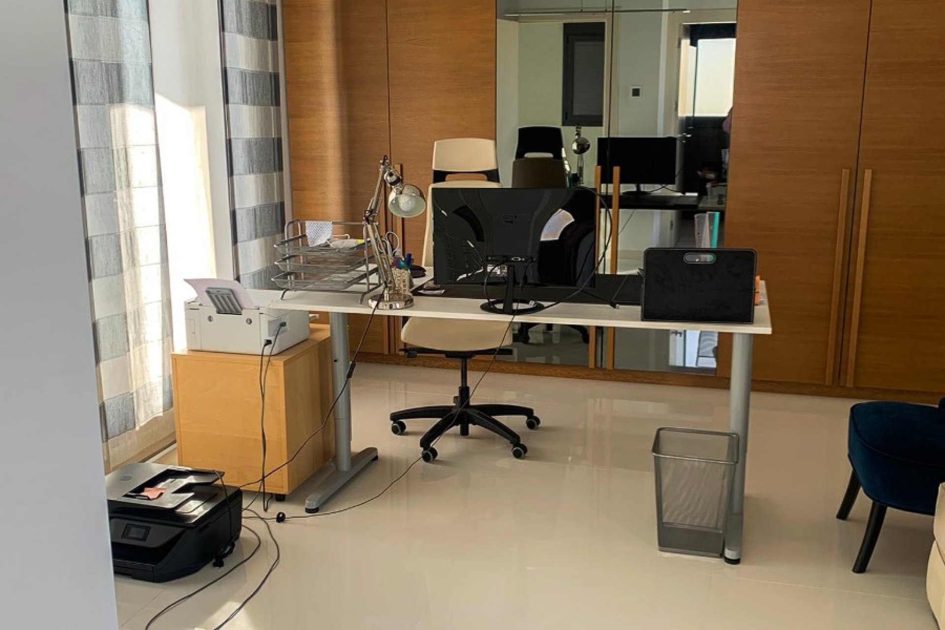 On the upper floor , a multifunctional bedroom with private bathroom —currently used as an office— is complemented by two spacious sun terraces , ideal for enjoying the sunny climate all year round.