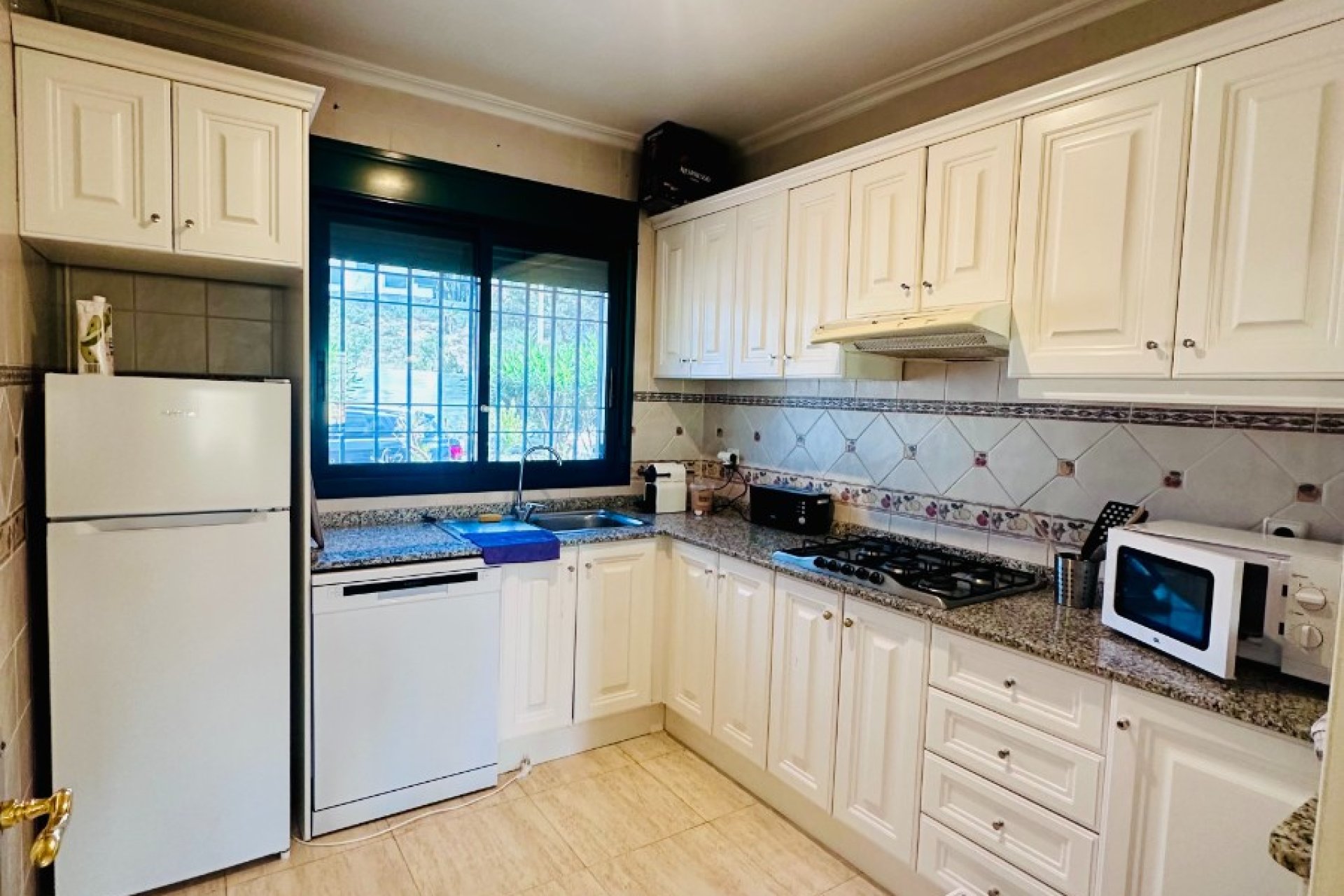 This stunning 2-bedroom, 2-bathroom apartment, located on the ground floor of a prestigious urbanization, offers the perfect blend of luxury and comfort. With its south-facing orientation, you will enjoy abundant natural light and a warm, inviting atmosphere all year round. Step into the spacious 45 m² living room, ideal for relaxing or entertaining guests. The separate, fully equipped kitchen comes with a convenient utility room, keeping everything within easy reach. Both bedrooms are equipped with air conditioning and feature en-suite bathrooms, ensuring maximum privacy and comfort. The built-in wardrobes offer plenty of storage space, and the large sunny terrace of 21 m² boasts breathtaking views of nature—perfect for outdoor dining or simply enjoying the tranquility. This apartment can be sold fully furnished and is part of a well-maintained community with beautiful gardens and a fantastic communal pool. Just minutes away, you will find top golf courses such as Campoamor, Villamartin, Las Ramblas, and Las Colinas. Also, enjoy the proximity to La Fuente shopping center with various restaurants, stunning beaches just 4 km away, and the vibrant Zenia Boulevard. - Bedrooms:2 - Bathrooms:2 - Built Area:103 m² - Built-in Wardrobes:3 - Year of Construction:2003 - Orientation:South Amenities: - Air Conditioning - Communal Pool - Playground - Fully furnished, including 2 comfortable sofa beds (never used as beds) - New furniture (indoors and outdoors) purchased 3 years ago and a brand-new mattress in the master bedroom - Fully equipped kitchen with modern appliances - Intercom - Utility Room - Reinforced Door - Alarm and Camera System - 24/7 Security Located just 600 m from Mercadona, 800 m from Aldi, and 740 m from the bustling La Fuente shopping center filled with bars and restaurants. Don’t miss the chance to own your ideal home in sunny Campoamor!