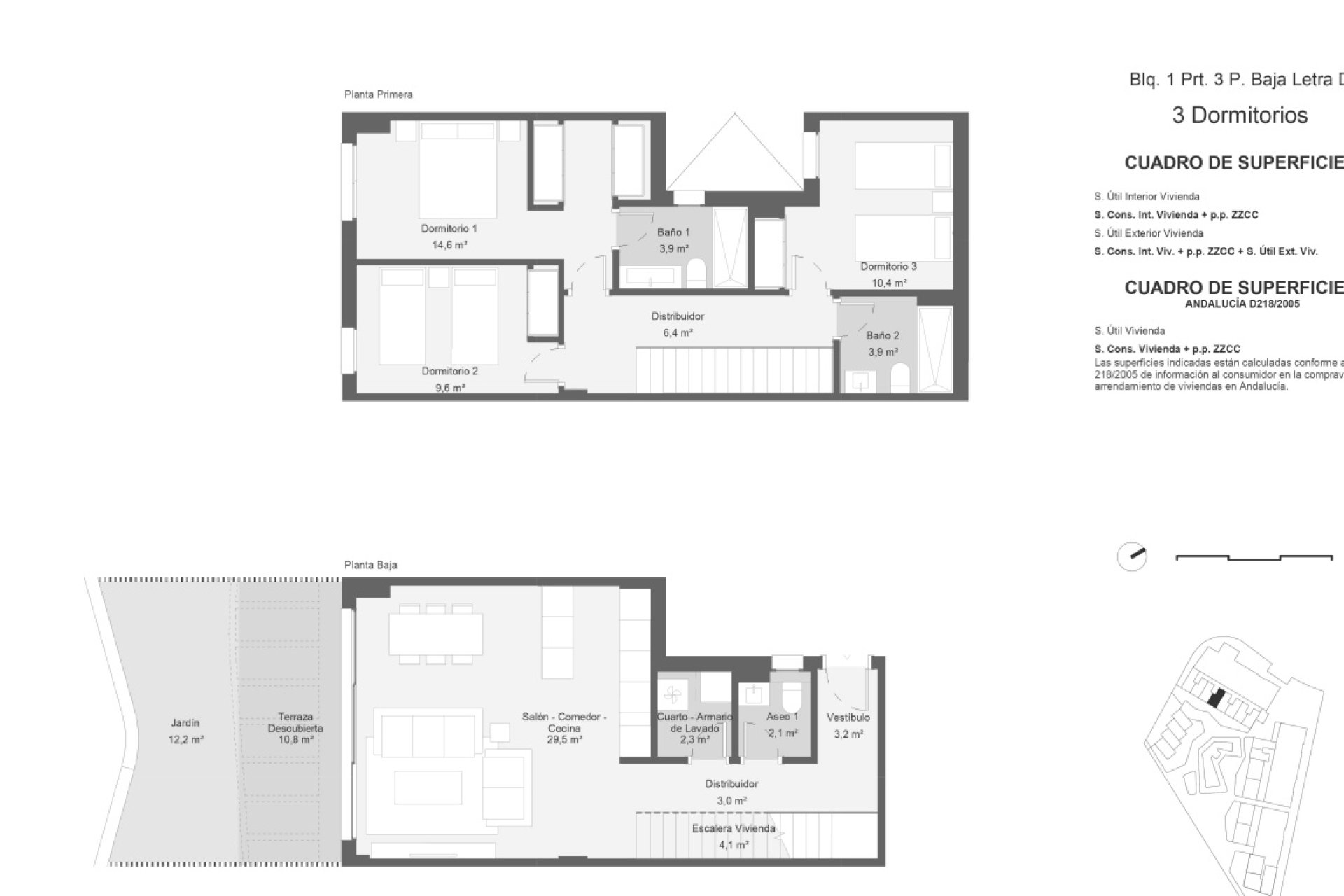 Inside these homes in Estepona, quality and comfort are prioritized. They offer options for apartments and ground floors with 2 or 3 bedrooms equipped with built-in wardrobes that maximize storage. The elegant porcelain stoneware floors add durability and sophistication to the interior spaces. The kitchens are fully equipped with modern appliances, while the bathrooms feature two units per home, ensuring maximum comfort for all residents.