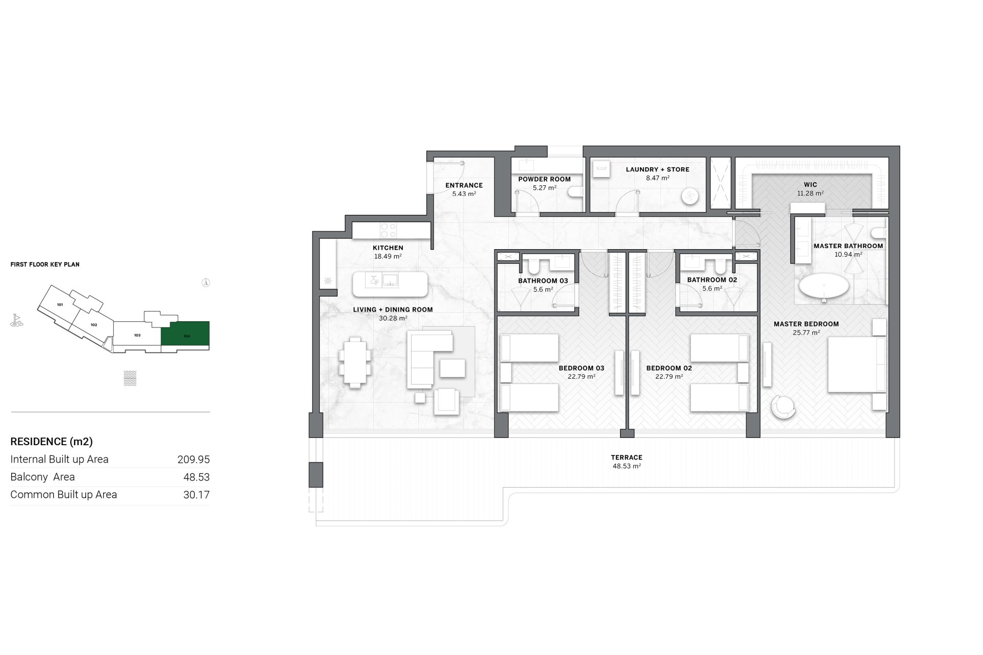 With an interior design that prioritizes comfort and modernity, the properties in Buenas Noches stand out for their marble floors that provide timeless elegance. The advanced home automation system facilitates the management of the modern home. The kitchens come equipped with premium appliances that ensure superior functionality. The built-in wardrobes provide generous storage without compromising the tidy aesthetic. Offering versatile layouts from 2 to 4 bedrooms and bathrooms, each property includes its own garage for added convenience.