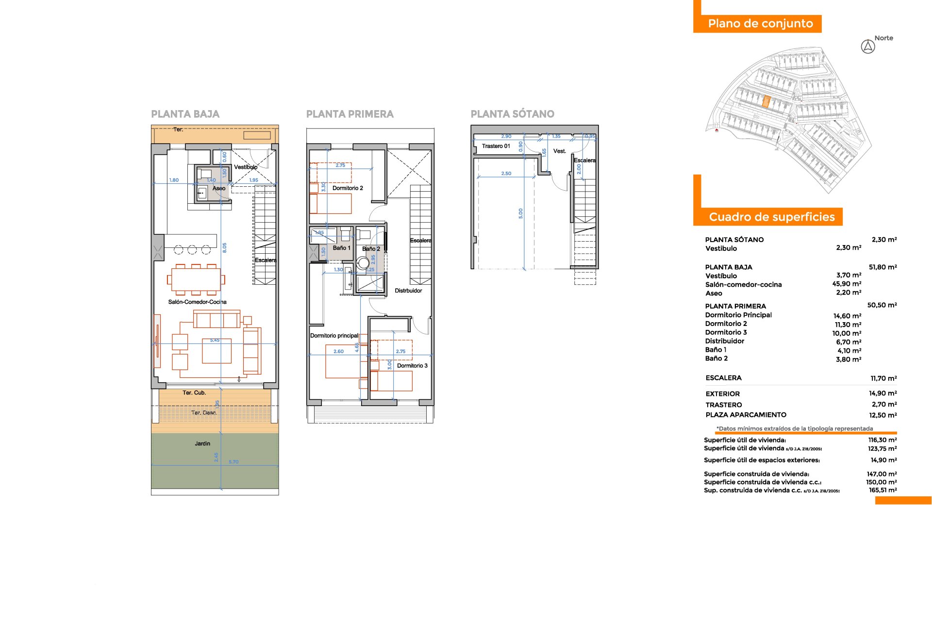 The interior design offers unmatched comfort with options between 3 and 4 bedrooms adapting to various family needs. The modern bathrooms guarantee style and comfort, while the elegant porcelain stoneware floors facilitate maintenance. The kitchens are equipped with premium appliances to simplify daily tasks, complemented by built-in wardrobes that optimize storage while keeping everything organized. Additionally, you will have a private garage for added security and convenience.