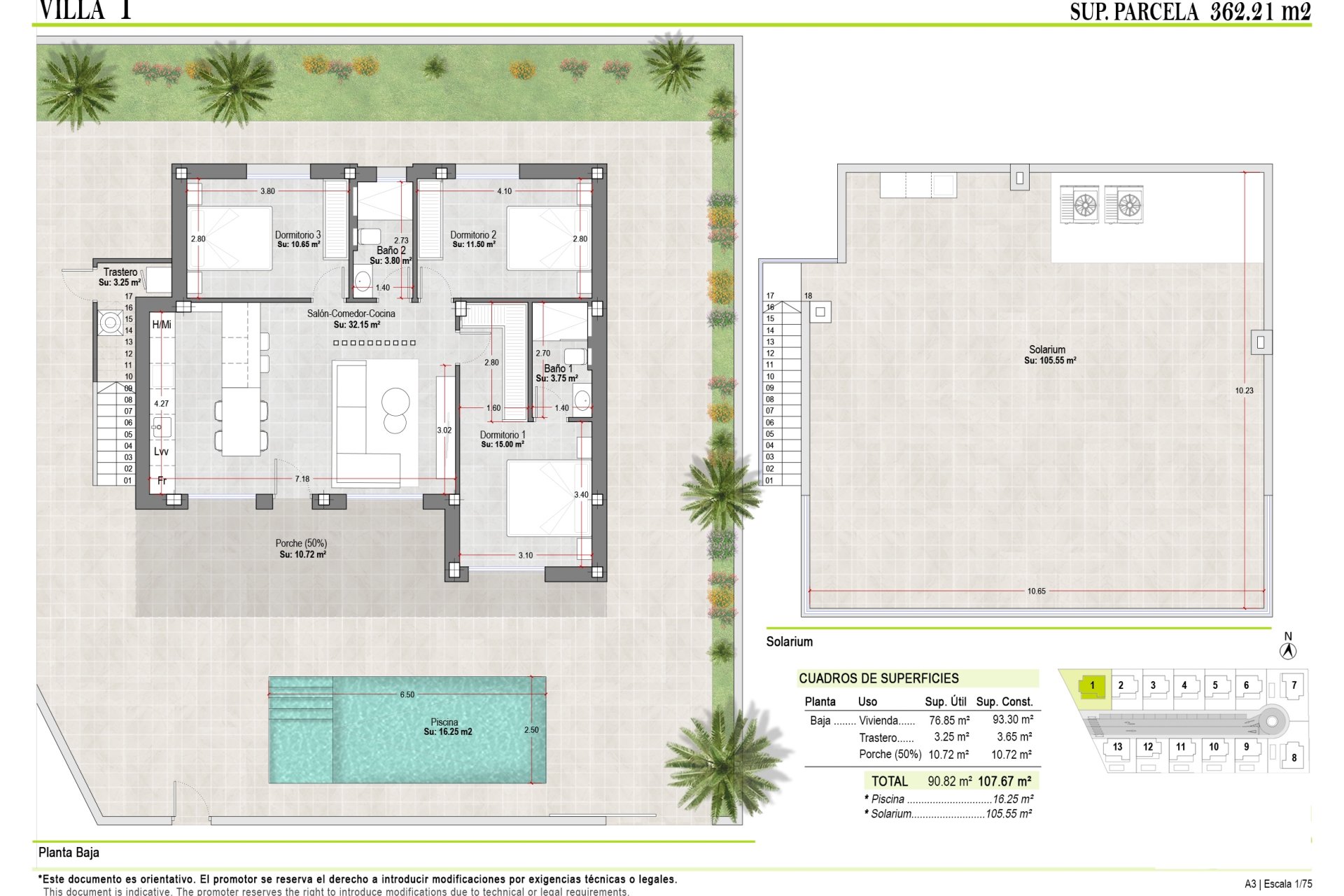 The interiors of these homes have been conceived with a focus on quality and detail. With porcelain stoneware floors that add style and durability, each space feels elegant and long-lasting. The homes feature three bedrooms and two bathrooms, designed to offer comfort and functionality. Built-in wardrobes optimize storage, while the pre-installation of air conditioning ensures comfort throughout the year. Electric blinds and included appliances add a modern touch to this fully equipped home.