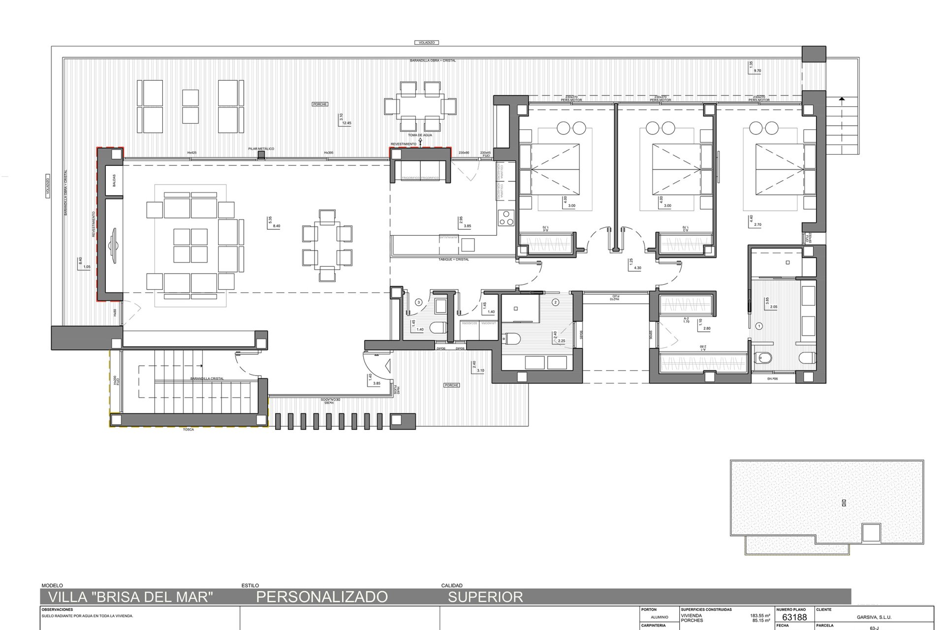 The exterior design of the villas in Cumbre del Sol is intended to maximize enjoyment of the Mediterranean climate. Each villa features a private garden and a spacious terrace, perfect for outdoor relaxation. Additionally, they have a private pool, ideal for cooling off on hot days. The villas are equipped with a jacuzzi and pergola, offering additional space for leisure and relaxation. The presence of a private garage ensures convenience and security for residents' vehicles.