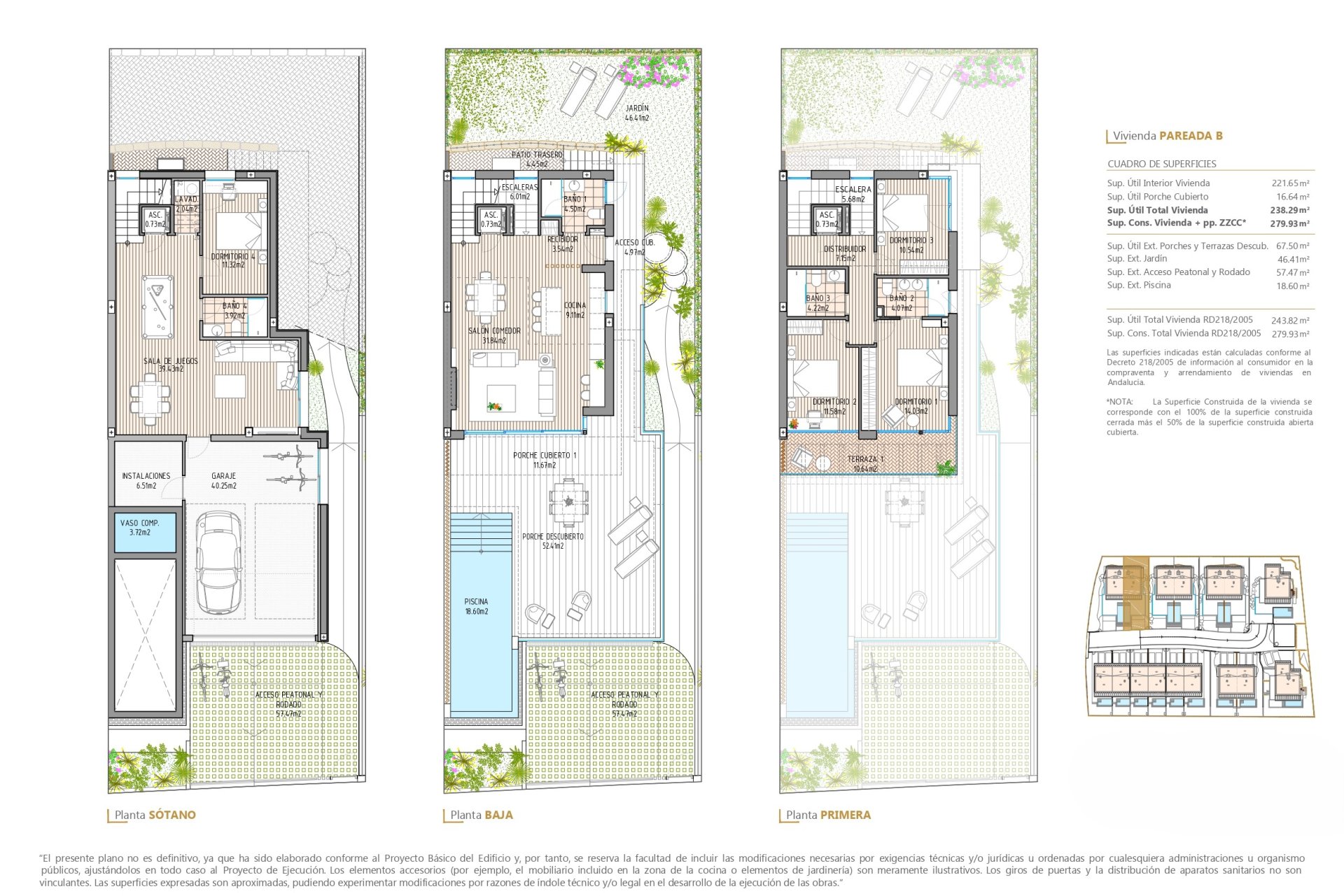 Designed to make the most of the Mediterranean climate, the exteriors feature private gardens perfect for outdoor activities or moments of relaxation in contact with nature. The spacious terraces are ideal for enjoying the surroundings while the private pools offer a refreshing escape during the summer. Additionally, the commitment to sustainability is reflected in the pre-installation for electric car charging, thus offering a modern and environmentally friendly lifestyle.