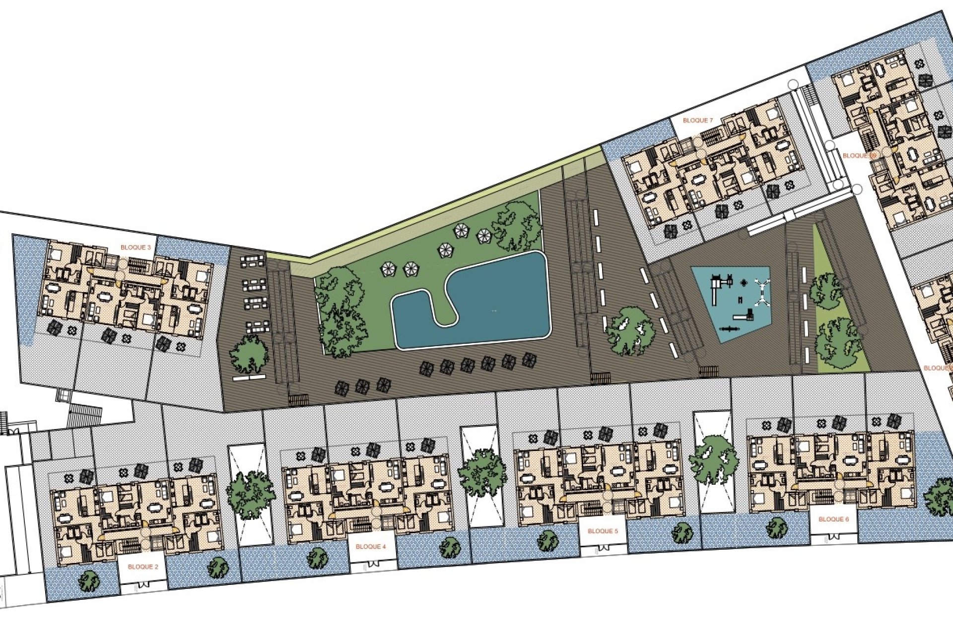 The residential complex features various common areas that enhance the quality of life. The community gardens create a serene green space, complemented by a communal pool and jacuzzi ideal for relaxing or socializing. For the more active, there is a paddle court and community gym available, while children can enjoy the play area designed especially for their safe fun.