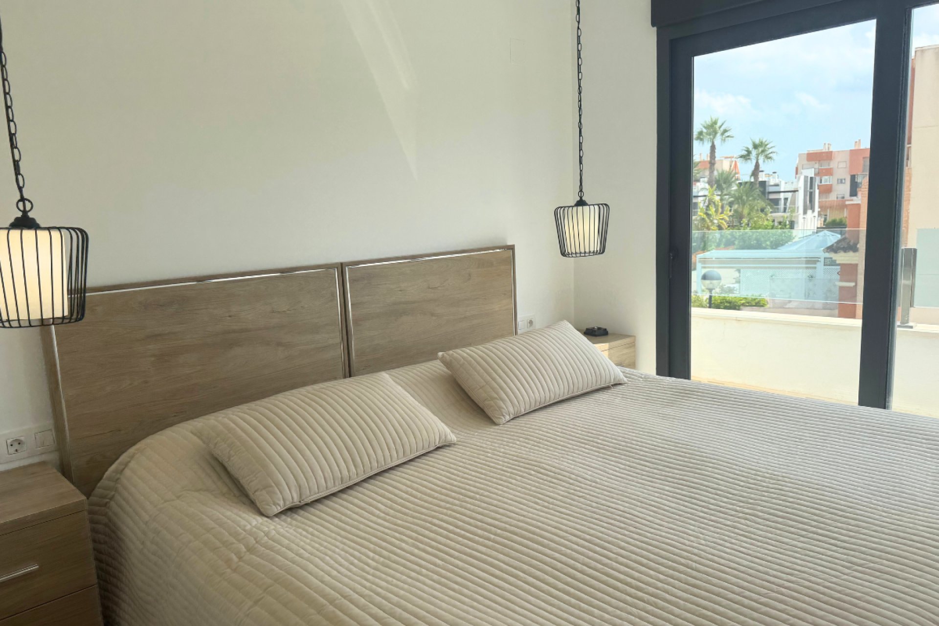 Elegant townhouse in the most sought-after area of Orihuela CostaThis two-floor townhouse, built in 2017, combines modern design, efficient use of space and a practical layout. Facing southeast, the property enjoys beautiful natural light throughout the day. The home features3 spacious bedrooms, 3 bathrooms, and ample wardrobe space that provides excellent storage. Large outdoor areas at both the front and back of the property offer versatile options for outdoor living and entertaining. There is also a solarium with stunning views – the perfect place to relax in the sun or enjoy evenings with family and friends. Included with the property: built-in air conditioning on both floors, home appliances, and modern furniture. The townhouse is located in one of the most sought-after areas of Orihuela Costa – close to beautiful beaches, shops, restaurants, and all essential services.