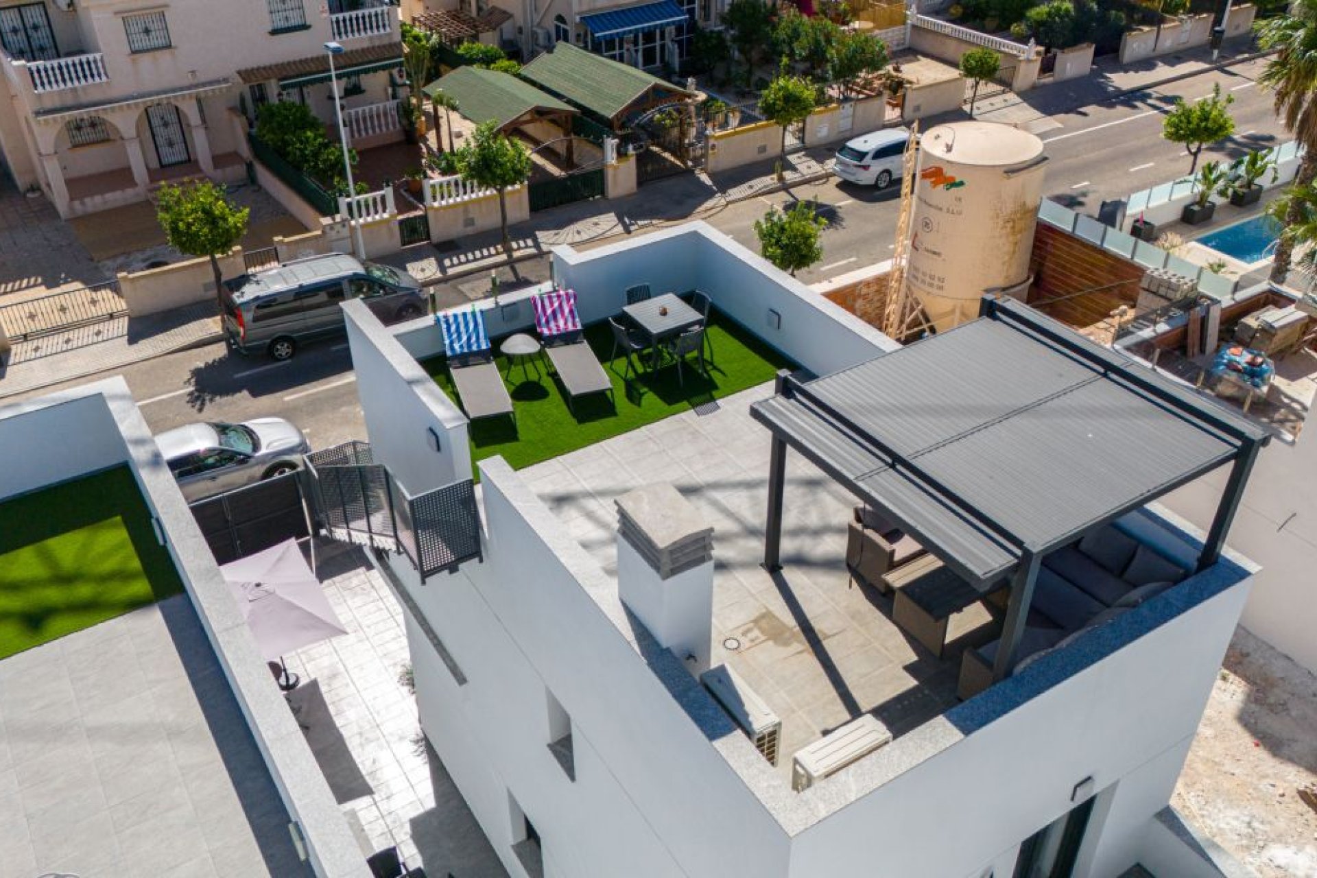 Don’t miss this unbeatable opportunity! This nearly new villa, located in an exclusive residential area surrounded by nature, is being sold below market value. With just a few months since its construction, it combines modern design, comfort, and total privacy. Built on a 116 m² plot, the home offers 106 m² distributed over two floors plus a private solarium with breathtaking views of Laguna Rosa in Torrevieja. The ground floor features a bright living-dining room with an open kitchen, one double bedroom, and a full bathroom, perfect for single-level living. The upper floor boasts two spacious bedrooms with en-suite bathrooms, each with direct access to the solarium, creating the ideal retreat. The exterior is designed for minimal maintenance and includes a private pool where you can enjoy the Mediterranean lifestyle all year round. This villa comes fully furnished and equipped, with all the extras: private pool, solarium, premium finishes, furniture and stylish modern decor. Now priced at 385,000€, this listing represents a true bargain. Originally valued at 385,000€, the purchase price just six months ago reached 420,000€ after adding extras such as the pool and solarium. Today, you can secure it at its original price — saving more than €35,000 compared to what was paid. Its privileged location is another highlight: only minutes from Habaneras shopping center, downtown Torrevieja, beaches, and all essential services. This is not just another property — it’s a rare chance to own a high-end, nearly new villa at a reduced price. Homes of this caliber and value do not stay on the market for long. Contact us today to arrange a viewing before this exceptional opportunity is gone!