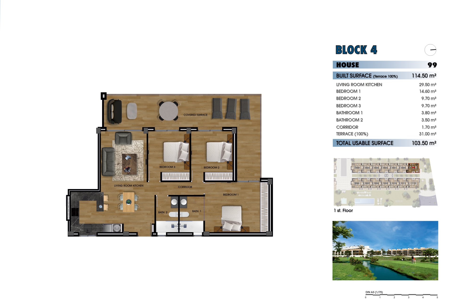 In the picturesque town of Los Alcázares, Alicante Spain Properties presents an exclusive residential complex. Here, future owners can choose from 87 units that include apartments, ground floors, and penthouses, each optimized for maximum comfort and functionality. Just 1 km from the sea, this development offers stunning ocean views and its proximity to a golf course located just 100 meters away makes it an excellent choice for golf enthusiasts. Additionally, the nearest airport is a comfortable distance of 44 km, ideal for frequent travelers.