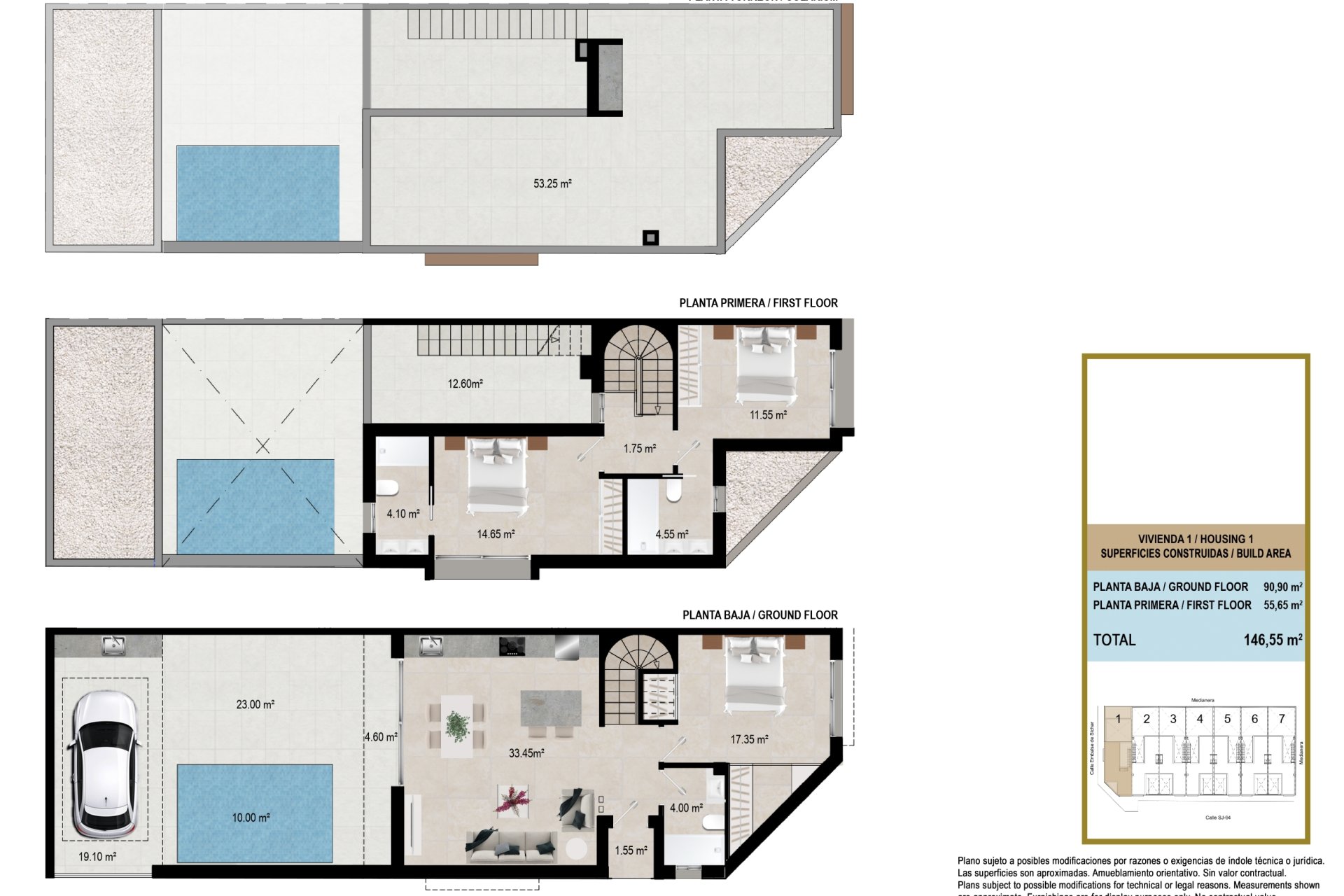 Located in the charming town of San Javier, this residential complex offers an exclusive selection of townhouses. Each home is designed to provide maximum comfort and functionality, ideal for those seeking a home in a prime location. The proximity to the airport, just 35 km away, adds significant value, facilitating travel for frequent flyers. The townhouse typology ensures a unique residential experience, combining privacy and community in a welcoming environment.