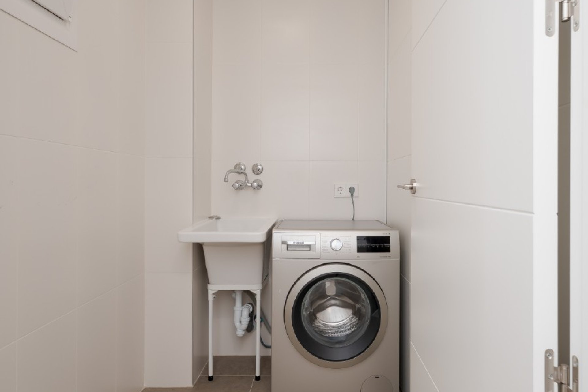 Key-ready ground-floor apartment in Flamenca Sun – only 500 metres from the beach Welcome to a beautiful and move-in-ready ground-floor apartment in the exclusive residential project Flamenca Sun, Block 1. This is a rare opportunity to secure a modern, high-quality home in one of the best locations in Playa Flamenca — just a five-minute walk from the beach and close to La Zenia Boulevard, the Saturday market, and every service the area offers. The apartment features a well-designed layout of 77.7 m² with two bedrooms and two elegant bathrooms. The master bedroom includes large built-in wardrobes, a private bathroom, and direct access to the terrace overlooking the pool area. The second bedroom is also bright and spacious with excellent storage. Both bathrooms are styled with modern, high-quality shower solutions. Inside, you are welcomed by a stylish kitchen with fully integrated appliances, generous workspace and a practical breakfast bar ideal for both meals and social gatherings. The living room extends seamlessly from the kitchen and is tastefully furnished, with large windows and direct access to a spacious terrace with views of the pool and green areas. For added comfort, the terrace is equipped with electric screens. The apartment also offers a pleasant entrance hall with wardrobe — a feature many new-builds lack — as well as a dedicated laundry room with washing machine and storage. What truly sets this home apart is the terraces on both sides of the property. With a private terrace at the entrance and a larger one facing the pool, you can enjoy sun or shade throughout the entire day according to your preference. The southwest orientation ensures excellent afternoon sun. Additional features include central air-conditioning (hot and cold), an underground parking space, and a private storage room conveniently located just behind the parking. Flamenca Sun is set to become one of the most attractive developments in the area, offering four large swimming pools, lush communal gardens, a children’s play area, bicycle parking, and several peaceful zones with parasols where you can relax during the warm summer months. The entire project is constructed using modern building standards with energy-efficient solutions, solid structures, and excellent thermo-acoustic properties. Playa Flamenca is a vibrant area all year round, with everything you need close at hand. The popular beaches of Playa Flamenca, La Zenia, Cabo Roig and Campoamor are just minutes away on foot or by bike, and the coastal path provides fantastic routes for walking and cycling. Several of the region’s renowned golf courses — including Villamartin, Las Ramblas, Campoamor and Las Colinas — are also nearby. A large supermarket is just around the corner, and restaurants, bars and shops are all within easy reach. Distances are extremely convenient: Alicante Airport is approximately 40 minutes away, as is Corvera Airport. Torrevieja centre is around eight minutes by car, La Zenia Boulevard is just ten minutes on foot, and the beach can be reached in the same time. This is the ideal home for anyone seeking modern comfort, an exceptional location and a property that can be enjoyed year-round.
