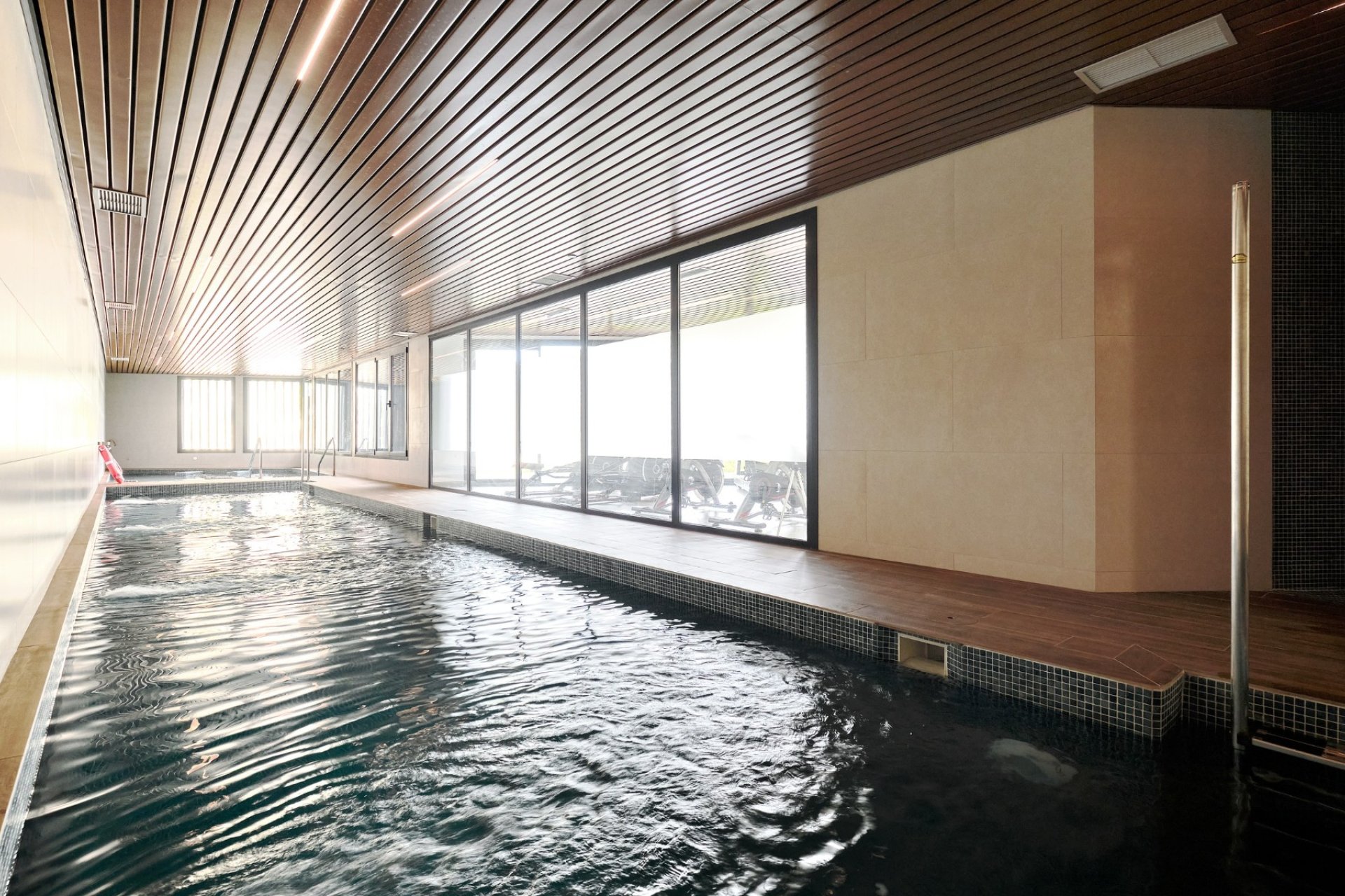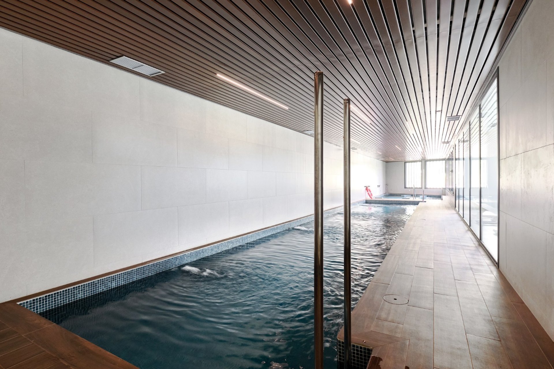 The complex offers exclusive common areas , including two outdoor swimming pools , a gym , a heated indoor pool , a jacuzzi and a magnificent communal rooftop terrace , equipped with a shared kitchen, guest spaces and panoramic sea views , creating a unique environment for relaxing and socializing.