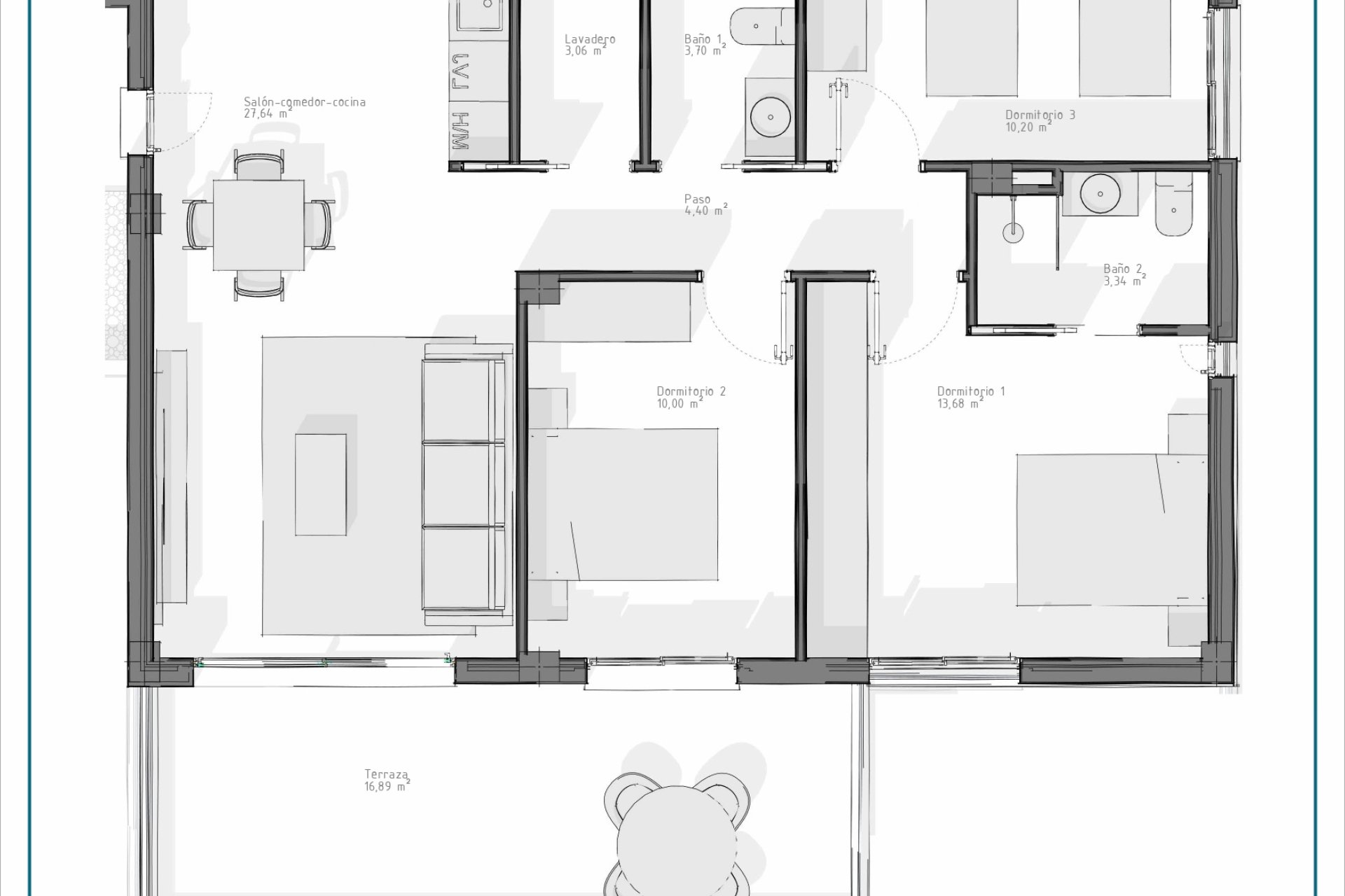 Inside each home, special attention has been paid to comfort and functionality. Available in options of 2 or 3 bedrooms with 2 full bathrooms, these apartments and bungalows are designed with families of various sizes in mind. The porcelain floors add modernity and elegance, while the electric blinds along with the pre-installation of air conditioning ensure energy efficiency and thermal comfort. The fully equipped kitchens facilitate daily tasks, and the built-in wardrobes offer practical and aesthetic storage solutions.