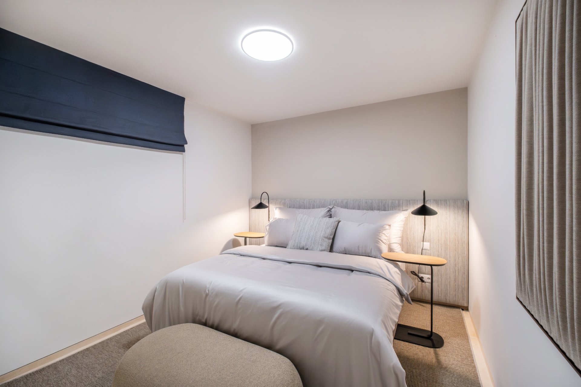 On the first floor, you'll find an elegant master bedroom with access to a custom-designed walk-in closet, as well as a rooftop terrace offering peaceful views. All bedrooms are equipped with TVs, ample storage, and impeccable design.