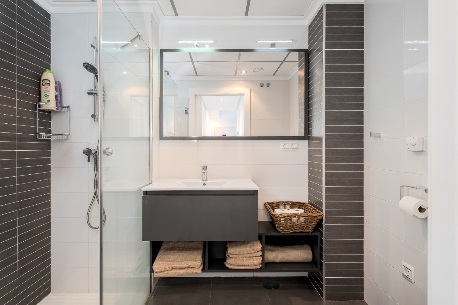 Royal Park Green Spa – Lomas de Cabo Roig Welcome to this exceptional penthouse located in the prestigious Royal Park Green Spa in Lomas de Cabo Roig, a beautifully maintained residential complex known for its lush gardens, high-quality spa facilities, and peaceful atmosphere. The property includes an underground parking space and a private storage room, offering both comfort and practicality. The penthouse features a spacious and modern layout with three bedrooms and two bathrooms. The master bedroom benefits from an en-suite bathroom and direct access to a private balcony, while the two additional bedrooms share access to an exclusive side balcony — a rare feature within the complex. This additional outdoor space allows you to choose between enjoying the afternoon sun or relaxing in the shade, depending on the time of day. The open-plan living and dining area is bright and inviting, framed by large windows that fill the space with natural light. The custom-designed kitchen blends style with functionality and is equipped with high-quality appliances, including a fridge with an ice maker and a separate filtered water system, along with well-planned storage solutions. A separate laundry room adds an extra level of convenience. The true highlight of this penthouse is the impressive private rooftop terrace, offering breathtaking sea views that extend all the way to La Manga. Designed as a space for both relaxation and entertaining, the terrace features an elevated platform to enhance the views, additional storage, and a built-in outdoor fridge. There is also ample room to install a jacuzzi, making this rooftop terrace an ideal setting for sunny afternoons and unforgettable evenings. For year-round comfort, the property is equipped with a brand-new Mitsubishi central air-conditioning system and underfloor heating in both bathrooms. Sold fully furnished, excluding personal items, the penthouse is ready for immediate enjoyment. Royal Park Green Spa offers an exceptional lifestyle, with access to a range of wellness and leisure facilities including an outdoor swimming pool, outdoor jacuzzi, heated indoor pool, Finnish sauna, Turkish bath, gym, and spa area, all set within beautifully landscaped and tranquil communal spaces. Although there is a communal rooftop terrace, it is rarely used, as this penthouse enjoys the luxury of its own private rooftop space. The community is quiet and welcoming, with a friendly international atmosphere and several Norwegian neighbors. Lomas de Cabo Roig is one of Orihuela Costa’s most desirable locations, offering the perfect balance between tranquility and accessibility. Some of the Costa Blanca’s finest beaches, including Cabo Roig, La Zenia, and Campoamor, are just a short drive away, while several renowned golf courses such as Las Ramblas, Villamartín, and Campoamor Golf are all within a 10-minute radius. The popular Zenia Boulevard Shopping Center, with its wide selection of shops, restaurants, and cafés, is also nearby, along with local supermarkets and dining options within walking distance. With excellent connections to the AP-7 motorway, both Alicante Airport and Murcia International Airport are under an hour’s drive away, making this penthouse an ideal choice as a permanent residence, holiday home, or investment opportunity in one of the Costa Blanca’s most attractive areas.