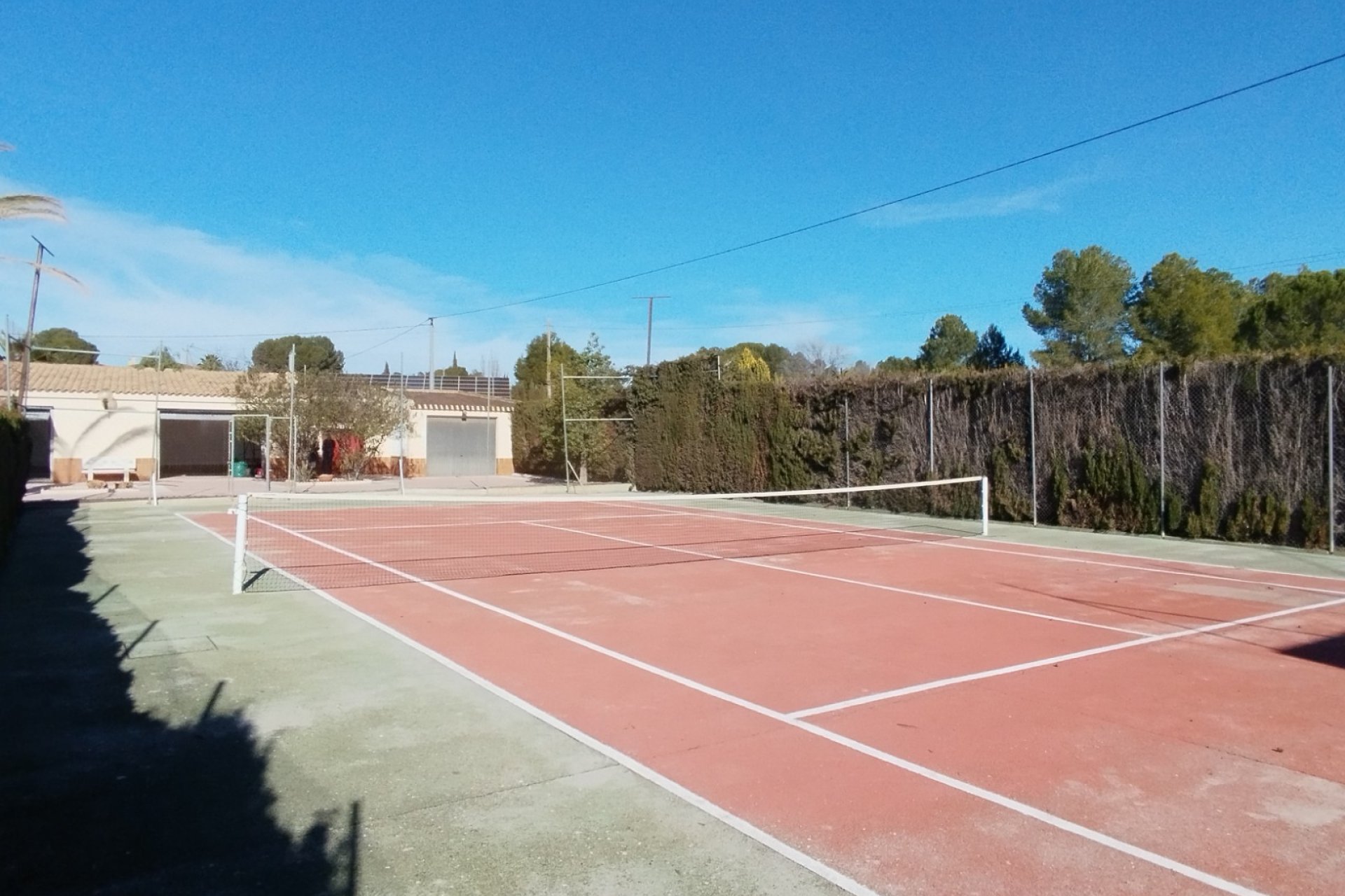 Behind the Tennis Court are the three garages, one of which is massive and could easily be turned into a Guest Apartment as it already has electricity and water connected.