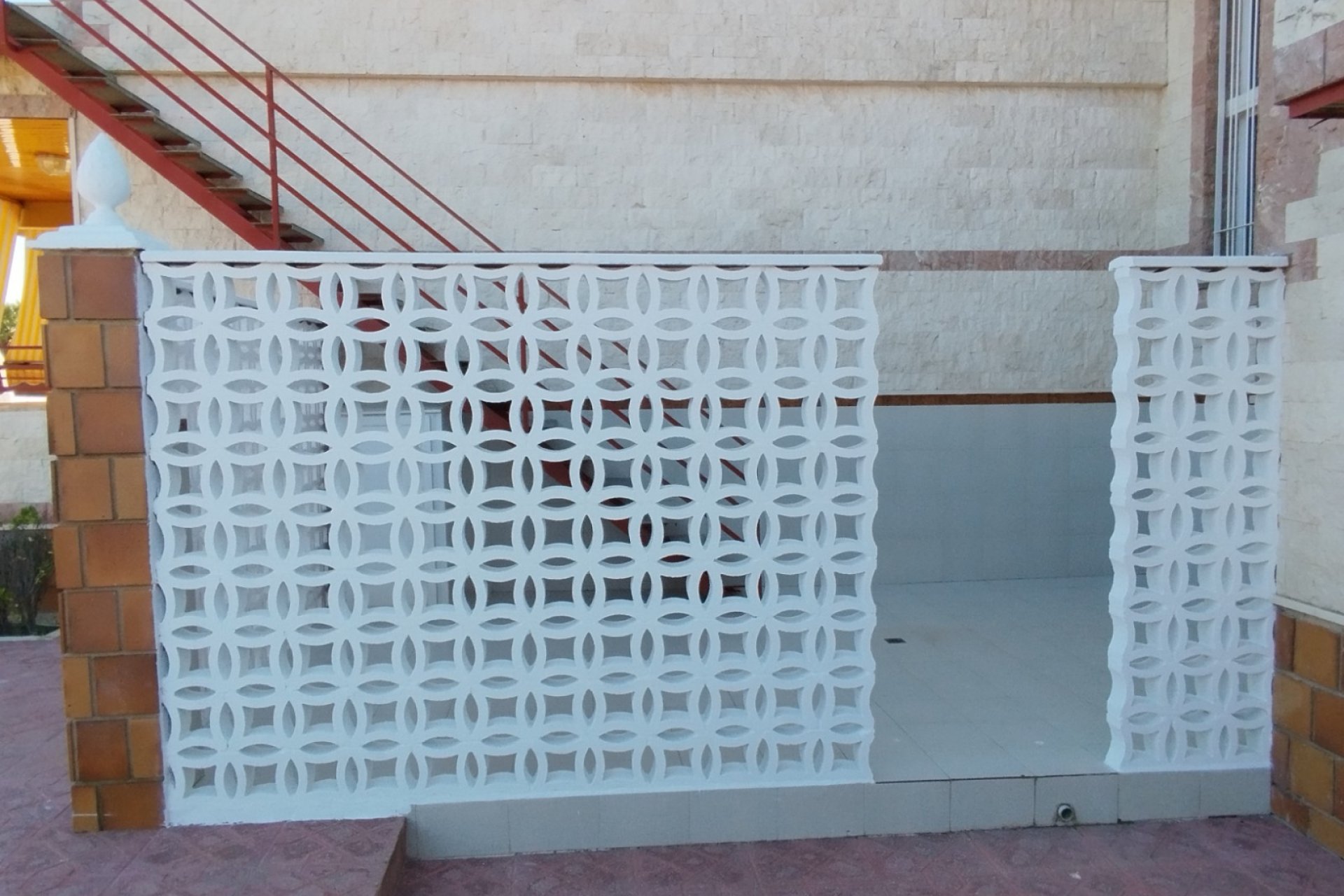 There is a lovely hallway with amazing stained-glass feature windows. A hallway leads to a Guest bathroom and then to the kitchen which is typically Spanish, as in not big because the Spanish use the BBQ for almost everything, however, it is hardly small and can be used as a dining area as well.