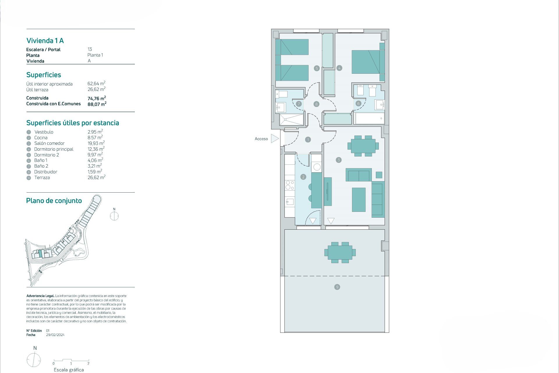 The residential complex offers spacious common areas designed for the complete enjoyment of its residents. A communal pool is perfect for cooling off during the summer while the garden areas create a serene environment ideal for relaxing or strolling. Additionally, it has communal parking ensuring convenience for daily parking.