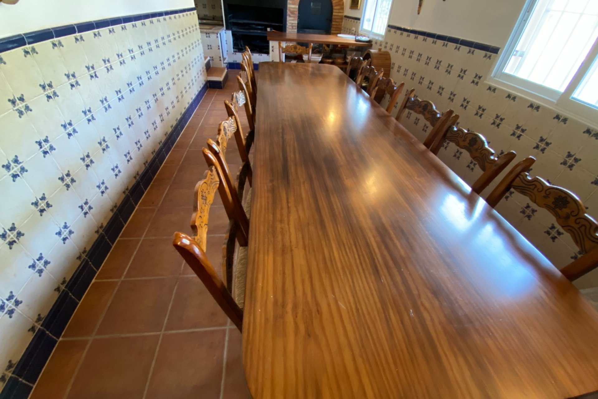 The kitchen is traditionally Spanish and by that, I mean not big but actually not small either; however, the integral garage has been converted into a massive kitchen diner with BBQ and cast iron oven with a table and chairs for 14, but the space is big enough for several more. This is a really special part of the property and is quite beautiful as well as practical.