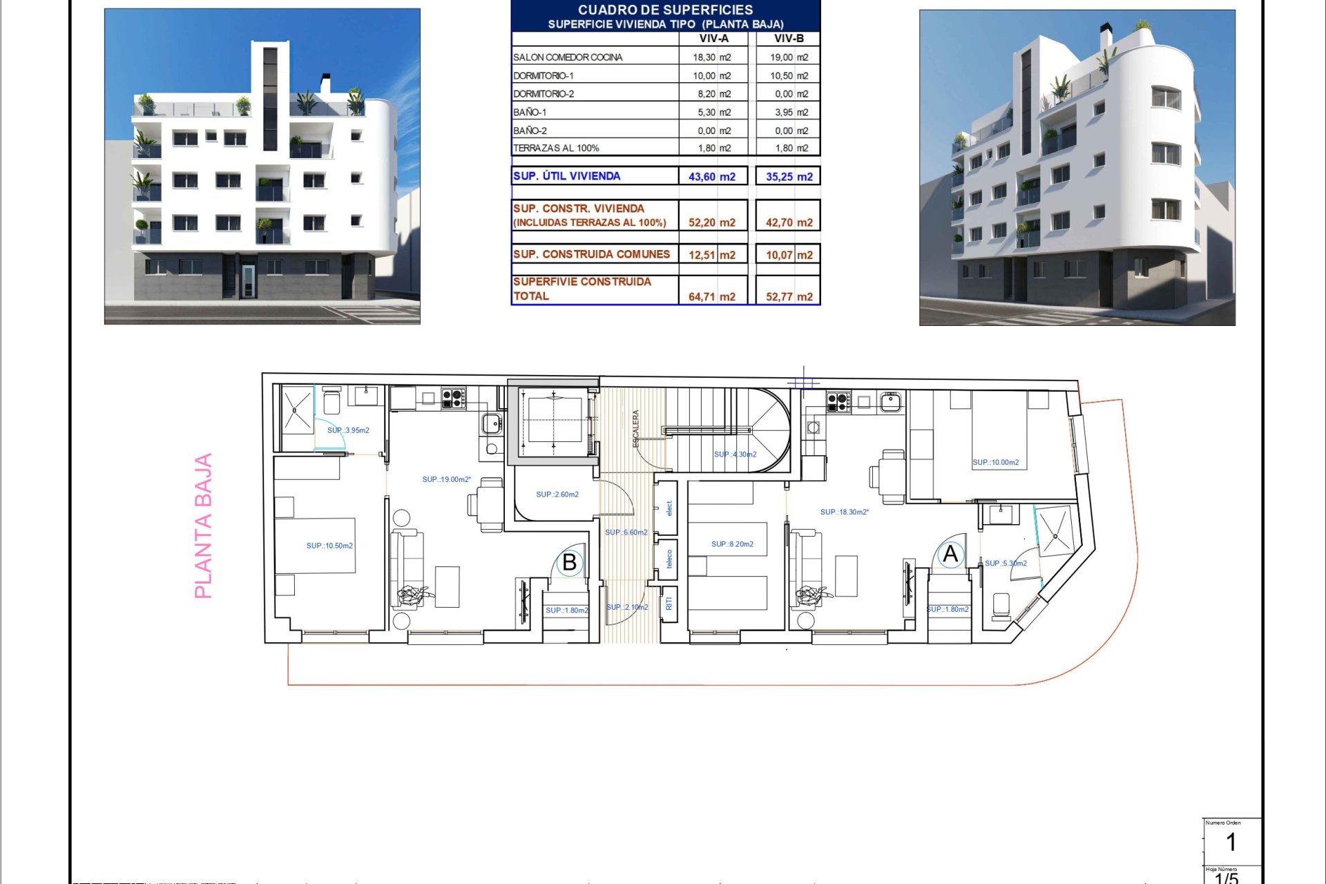 Located in the charming town of Torrevieja, this residential complex offers a selection of 11 properties including apartments, ground floors, and penthouses. Designed for those seeking a home in a coastal environment, the complex is just 700 meters from the sea, allowing for enjoyment of the sea breeze and pleasant walks along the beach. Additionally, its proximity to the airport, just 17 kilometers away, facilitates connections for frequent travelers. The properties are designed to adapt to different needs, with options of one or two bedrooms and one or two bathrooms, allowing for the choice of layout that best suits each lifestyle.