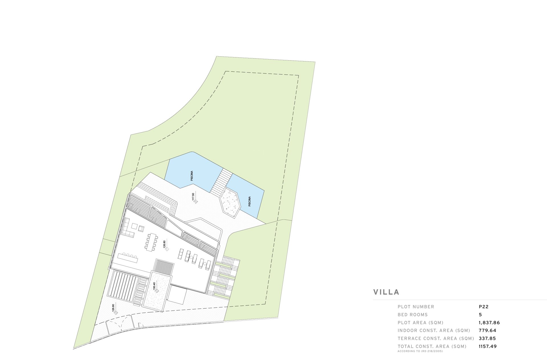 The interior of these exclusive villas is designed to provide absolute comfort and distinction. Marble-covered floors elevate the sophistication of the space, while the underfloor heating system maintains a pleasant temperature throughout the year. Equipped with air conditioning and advanced home automation, these homes facilitate efficient control of the household. Premium appliances and built-in wardrobes complement this interior design where functionality and style go hand in hand. Each villa includes a private garage to ensure maximum convenience.