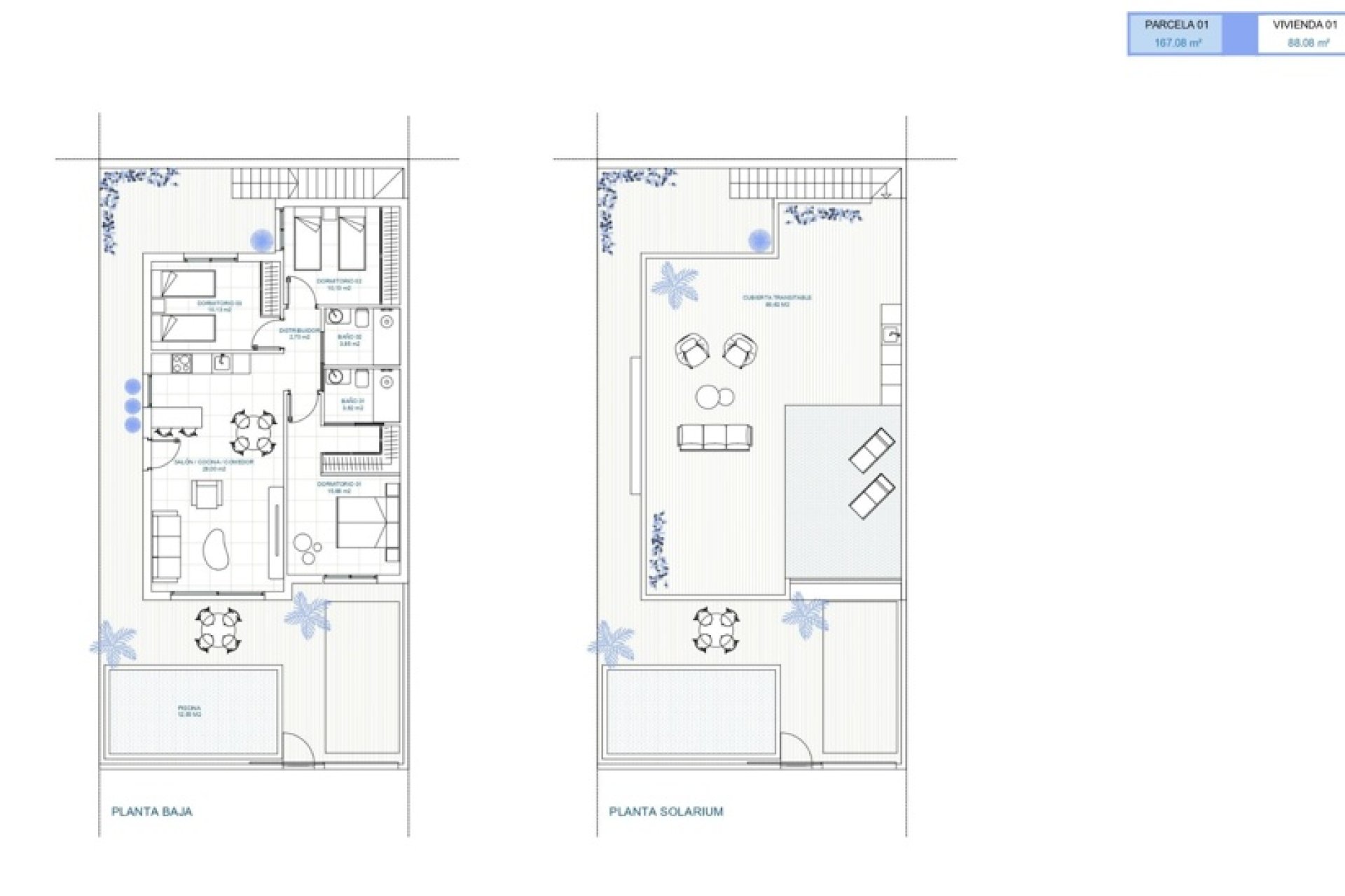 Enjoy the Mediterranean climate outside these townhouses. Each home features a private terrace perfect for relaxing moments or outdoor meals with family. The solarium is an additional space where you can sunbathe and admire the views of the surroundings. Furthermore, each property includes a private pool that adds an exclusive and refreshing touch for warm days.