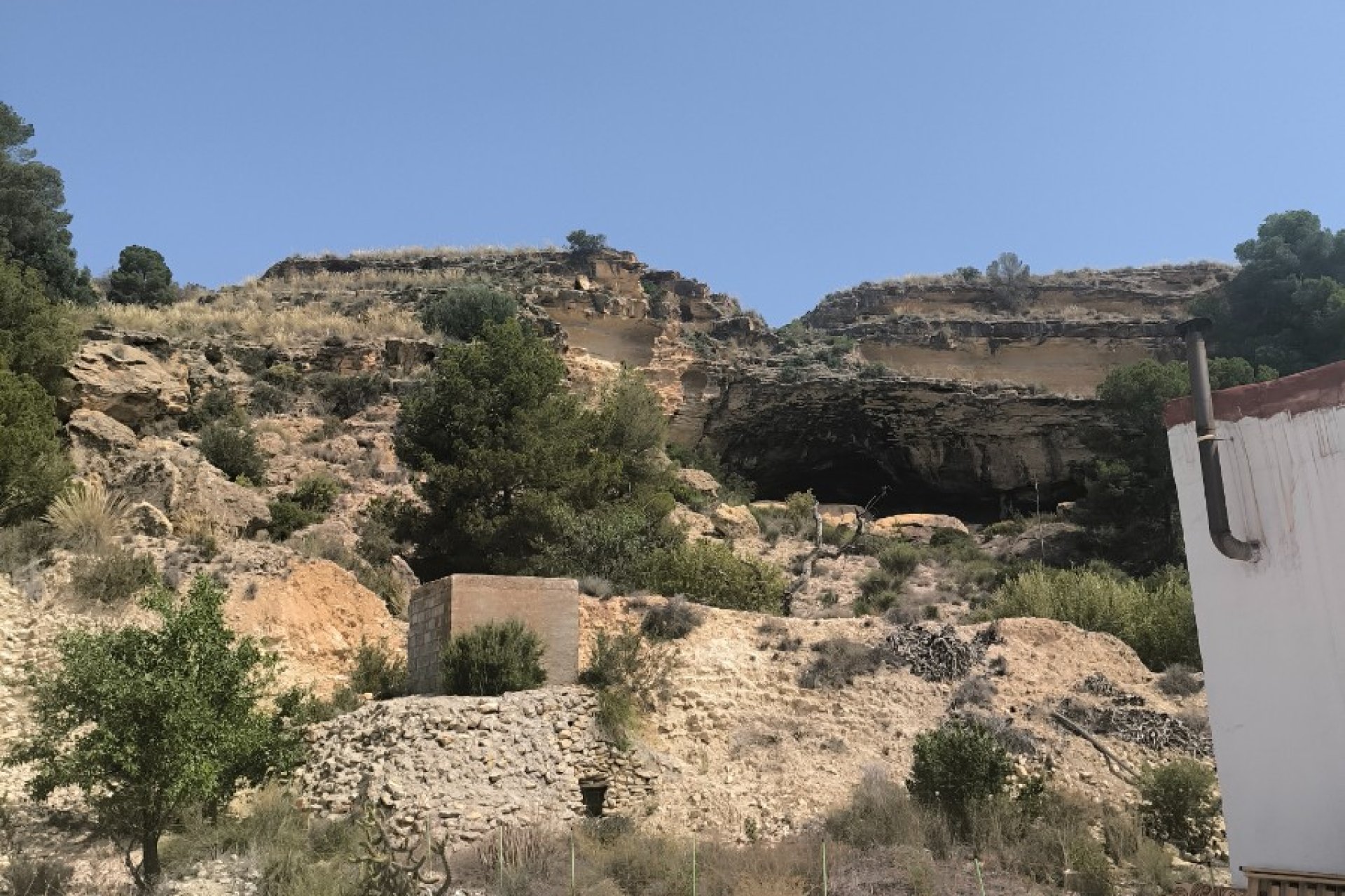Quietly located country house near the Cueva Negra (black cave) in Fortuna. The property has no fewer than 5 bedrooms (15m², 14m², 11m², 8m² and 13m²) and 1 bathroom (4.6m²) and is completely detached on a huge plot of over 20,000m²! This is quite exceptional in this region. Ideal for people who want to start a camper van site at home, for people who want to keep animals, or simply love peace and space. The spacious 42m² living room is currently only accessible from the outside, but this can easily be solved by creating a passageway from the living room to the rest of the house. It is also possible to convert the living room into a guest room and then convert one of the five bedrooms into a living room. The house is well insulated and equipped with double glazing and roller shutters, so air conditioning is not necessary in the summer. For the colder nights in winter, the cosy wood-burning stove is used. The plot, which is almost entirely fenced in, is divided into different levels, so you can still maintain your privacy even when opening a camper van site. There are almond trees, olive trees, pomegranate trees, mandarin trees and a lemon tree, among others, but there is plenty of room to expand this assortment. On one of the levels, there is a large, sturdy 10x5m above-ground swimming pool with a caravan next to it, which is included in the sale. Work has begun on a toilet block with a septic tank for motorhome owners, but this has not yet been completed and/or connected. If there is no desire to start a motorhome site, this can also be used as a storage shed. The property is connected to the electricity grid and has a drinking water and irrigation water connection. The property is being sold partially furnished. There are several restaurants and thermal baths less than 4 km away. The centre of Fortuna is about a 5 km drive away, where you will find several schools, supermarkets, shops and a GP surgery. The climate in Fortuna, Murcia, is a warm steppe climate, with temperatures ranging from an average of 18°C in winter to an average of 34°C in summer. The average annual temperature is around 26°C, with an average annual rainfall of only 352 mm. For your information: The caravan covered with the blue tarpaulin is not included in the sale.
